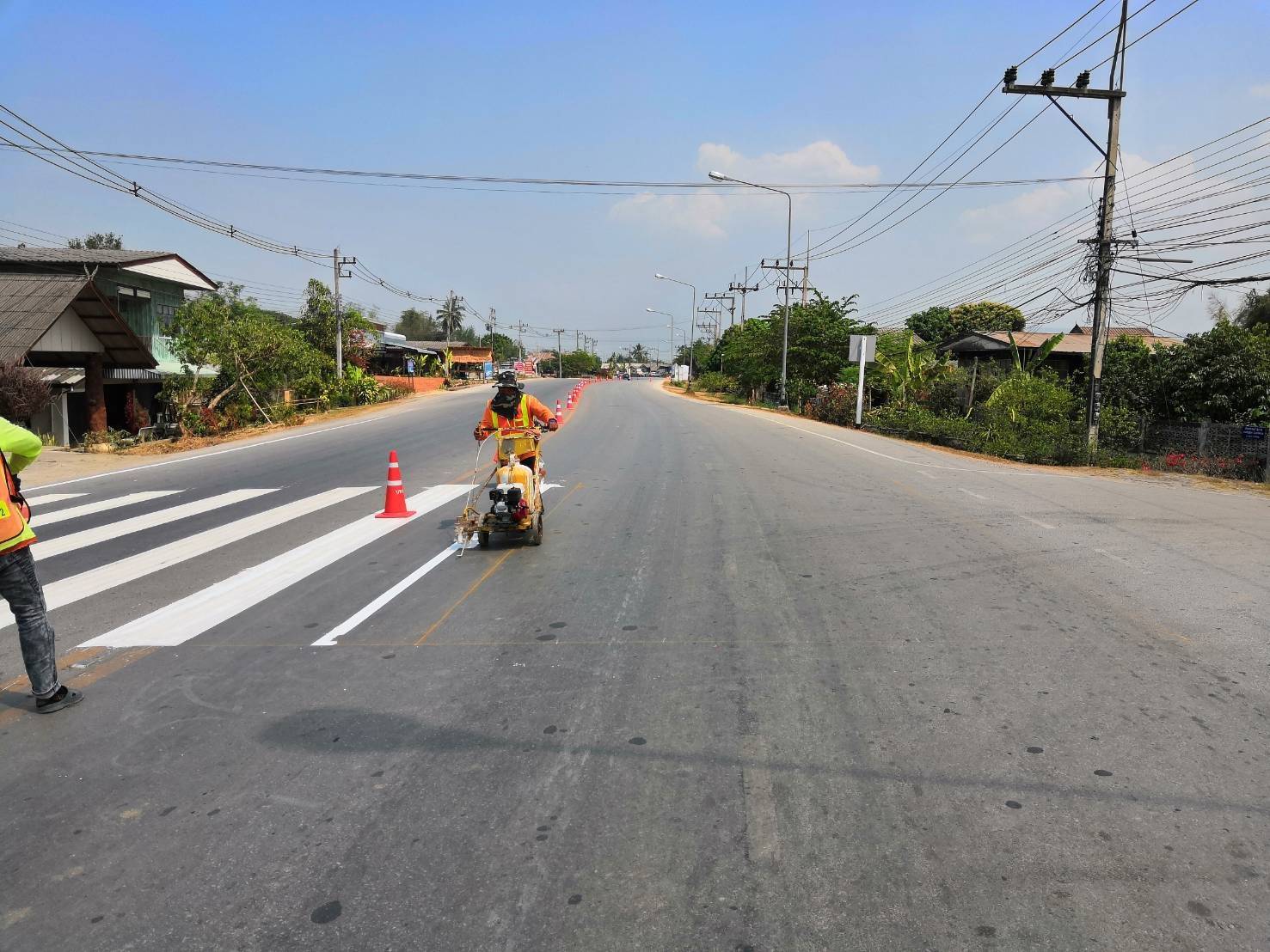 ดำเนินการตีเส้นและทำเครื่องหมายจราจรบนผิวทาง |