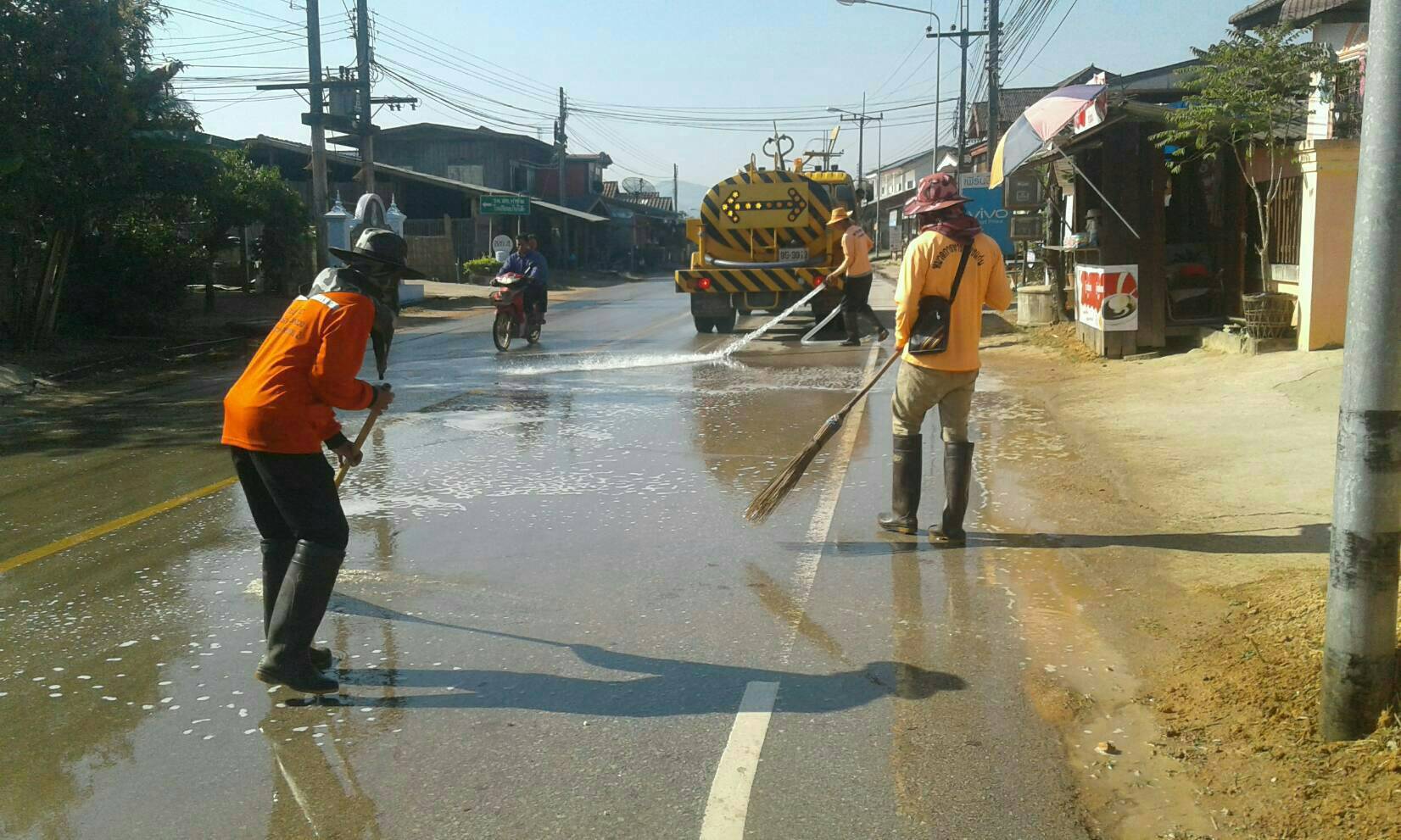 วันที่ 21 กุมภาพันธ์ 2562 นายทวีศักดิ์ รุจิจรรยาวัฒน์ ผู้อำนวยการแขวงทางหลวงเชียงรายที่ 2 จัดเจ้าหน้าที่เข้าดำเนินการทำความสะอาดถนน และฉีดพรมน้ำเพื่อ ลดฝุ่นละออง PM2.5 ทล.1020 ตอน ชมภู - เชียงของ กม.131+000 - กม.139+218 ทล.1128 ตอน เชียงเคี่ยน - ป่าแงะ กม.5+100 - กม.5 + 350 ทล.1173 ตอน ศรีเวียง - แม่เลียบ กม.3+500 - กม.6+50 ทล.1155 ตอน ทรายกาด - บ้านลุง กม.54+000 - กม.70+000 ทล.1020 ตอน บ้านปล้อง - ชมภู กม.61+000 - กม.65+000