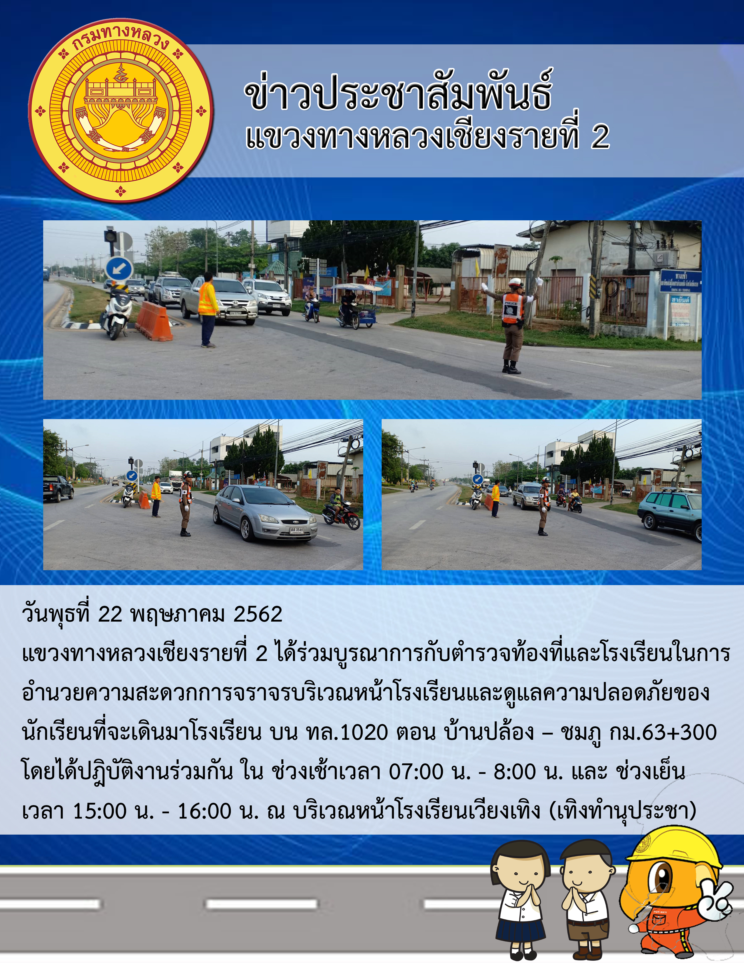 แขวงฯเชียงรายที่ 2 จัดเจ้าหน้าที่อำนวยการจราจรช่วงโรงเรียนเปิดเทอม