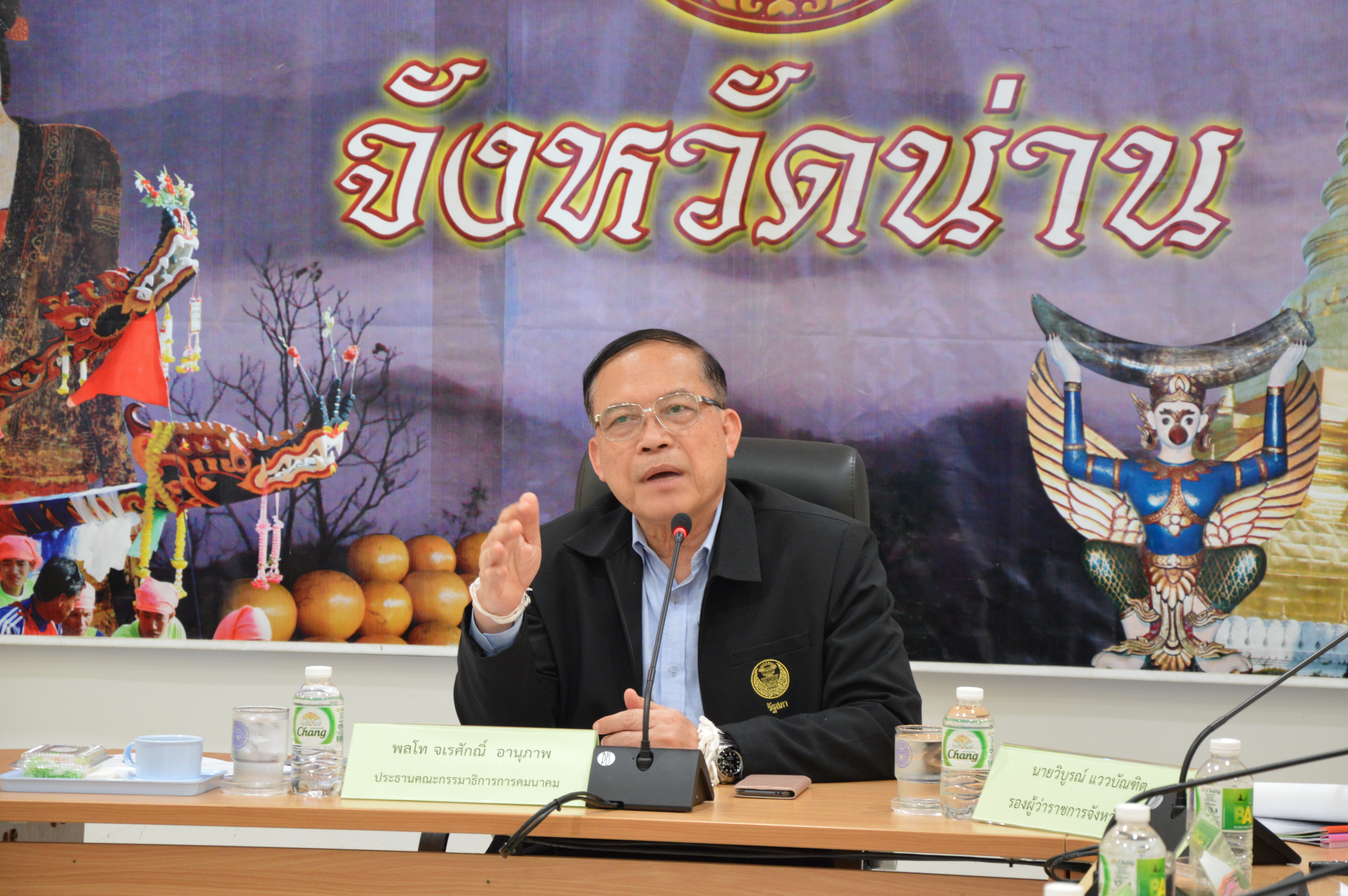 คณะกรรมาธิการ สภานิติบัญญัติแห่งชาติ นำโดยพลโท จเรศักดิ์ อานุภาพ ประธานคณะกรรมาธิการ พร้อมคณะฯ ประชุมเพื่อรับทราบข้อมูลร่วมกับหน่วยงานที่เกี่ยวข้องกับการพัฒนาเส้นทางการคมนาคม และระบบโลจิสติกส์ของจังหวัดน่าน ให้เป็นศูนย์กลางการขนส่งและการท่องเที่ยวในพื้นที่ภาคเหนือ โดยมีนายอภิชาต อุปสิทธิ์ ผส.ทล.2, นายสกล กาญจนากร ผอ.ขท.น่านที่ 1 และหน่วยงานในสังกัดกระทรวงคมนาคม ให้การต้อนรับและเข้าร่วมประชุม ณ ห้องประชุมสุมนเทวราช ศาลากลางจังหวัดน่าน