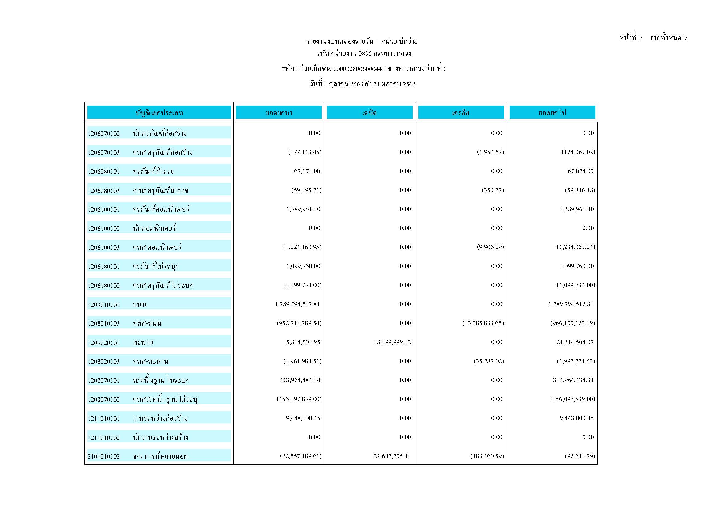 รายละเอียดงบทดลองเดือนตุลาคม 2563