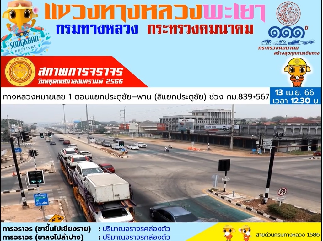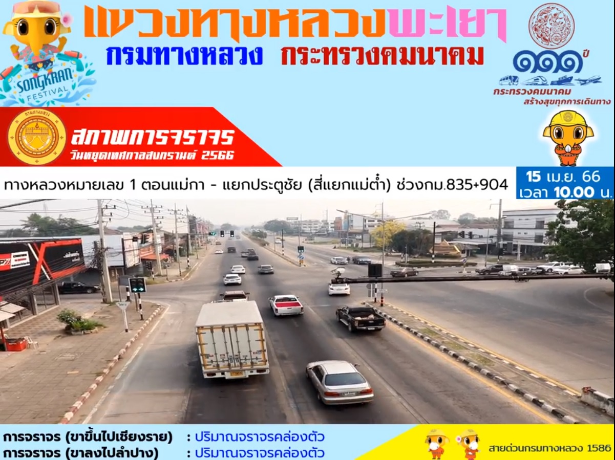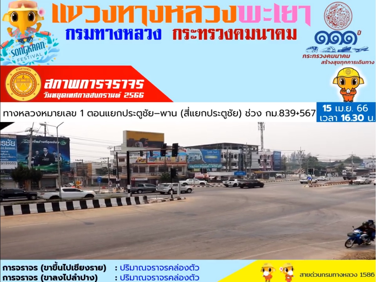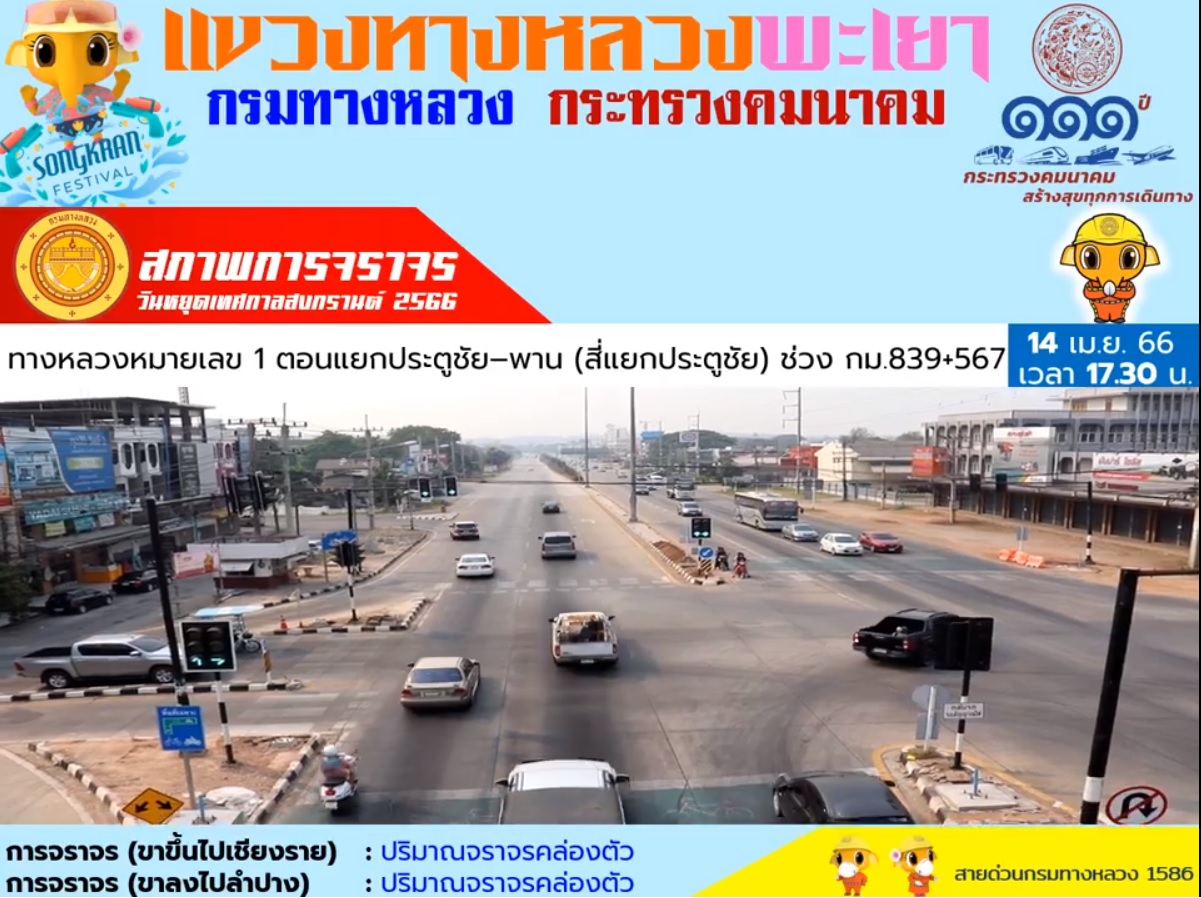 แขวงทางหลวงพะเยา กรมทางหลวง ขอประชาสัมพันธ์ ปิดจุดกลับรถ (U-TURN) ตั้งแต่วันที่ 11 - 17 เมษายน 2566 (รวม 7 วัน)