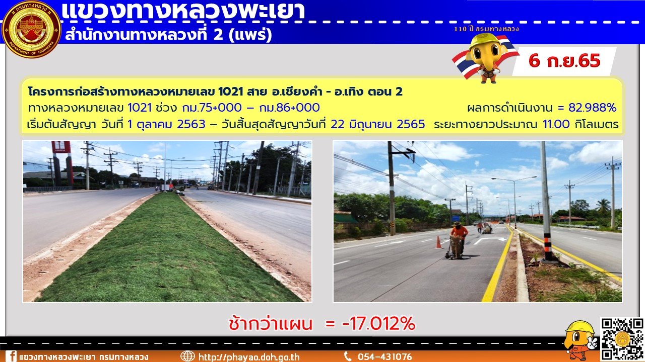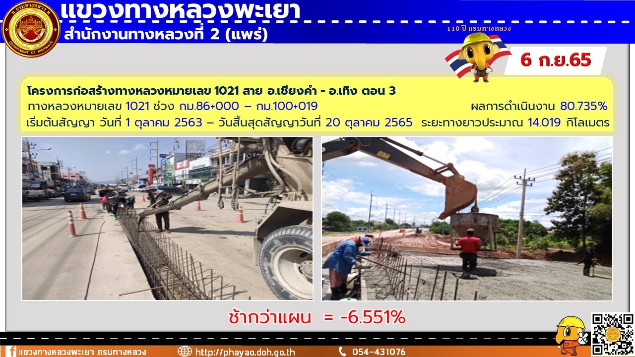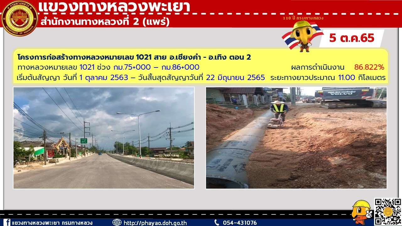 กรมทางหลวงเร่งขยายทางหลวง 1021 ตอน อ.เชียงคำ จ.พะเยา - อ.เทิง จ.เชียงราย เป็น 4 ช่องจราจร รองรับถนนสายเศรษกิจ R3A เชื่อมโยงการคมนาคมกลุ่มประเทศอนุภาคลุ่มแม่น้ำโขง