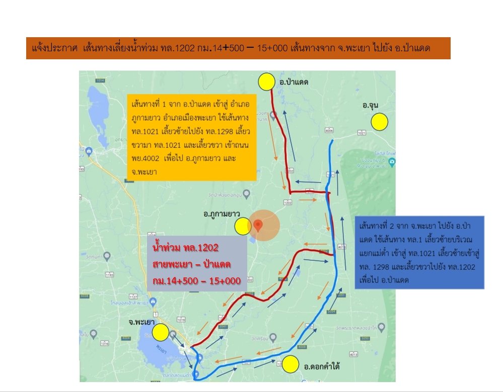 ข่าวประชาสัมพันธ์แขวงทางหลวงพะเยา #แจ้งประกาศ# เส้นทางเลี่ยงน้ำท่วม |