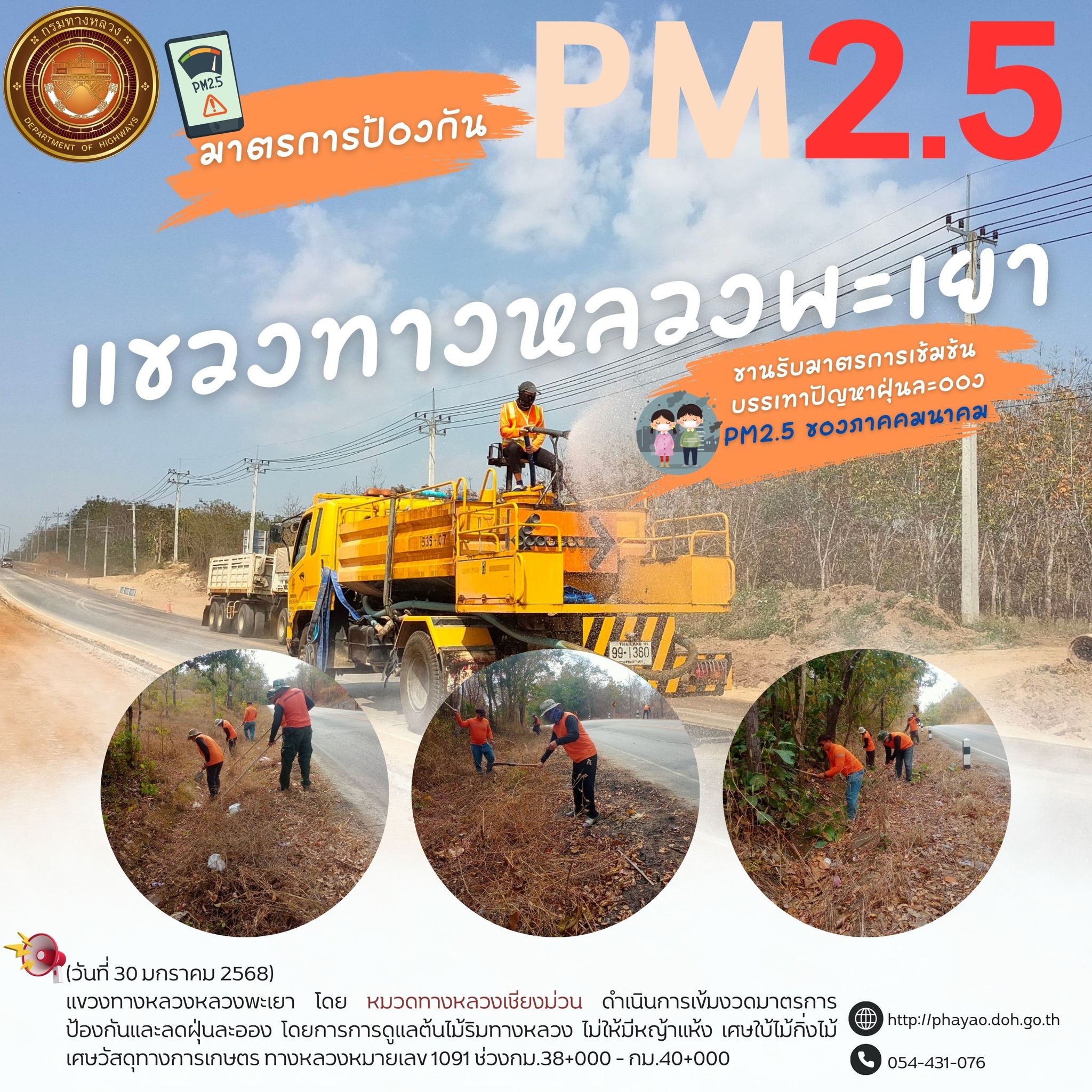 นายพูนศักดิ์ เมาะราษี ผู้อำนวยการแขวงทางหลวงพะเยา ขานรับมาตรการเข้มข้นบรรเทาปัญหาฝุ่นละออง PM2.5 ของภาคคมนาคม ตามมาตรการลดปัญหาฝุ่นละอองขนาดเล็ก PM2.5