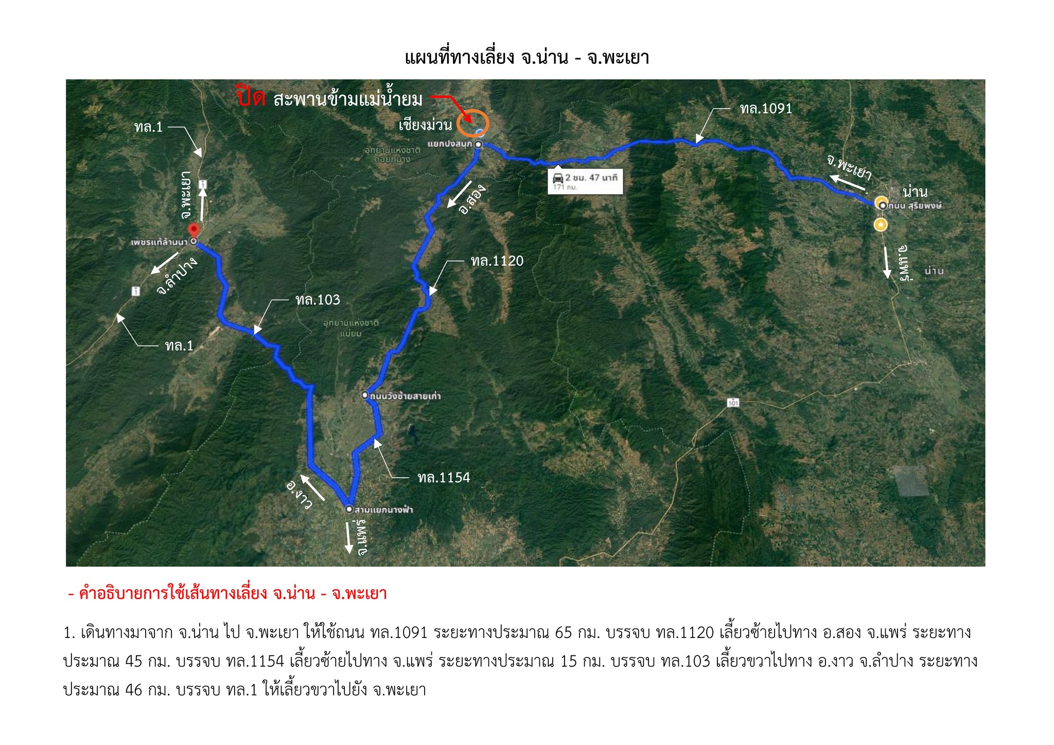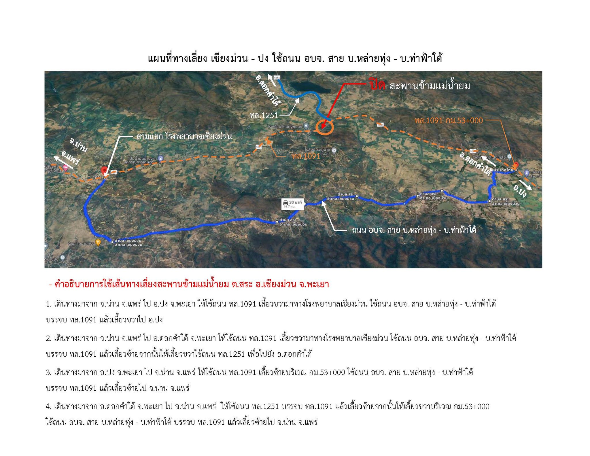 ประชาสัมพันธ์เส้นทางการจราจร แผนที่ทางเลี่ยง จ.พะเยา - จ.น่าน