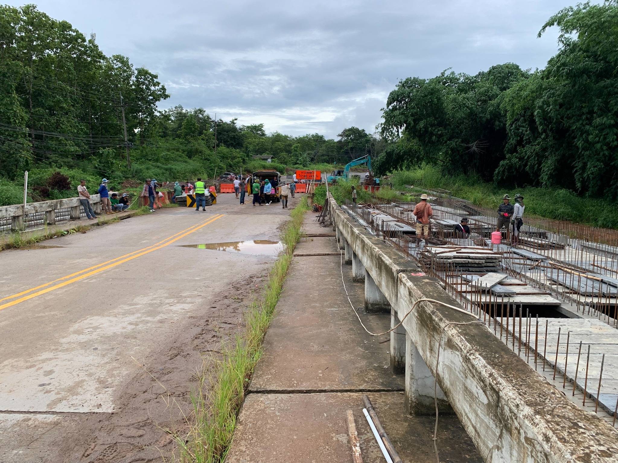 แขวงทางหลวงพะเยา กรมทางหลวง โดย ศูนย์สร้างทางและบูรณะสะพานที่ 1 (พิจิตร) เร่งดำเนินการทอดสะพานเบลี่ย์บนทางหลวงหมายเลข1091 ตอน ป่าแดง - ปงสนุก ช่วงกม.59+283 (หน้าหมวดทางหลวงเชียงม่วน) เนื่องจากเกิดตอม่อสะพานทรุดตัว ซึ่งเสี่ยงให้ก่อให้เกิดอันตรายแก่ผู้ใช้เส้นทางดังกล่าว