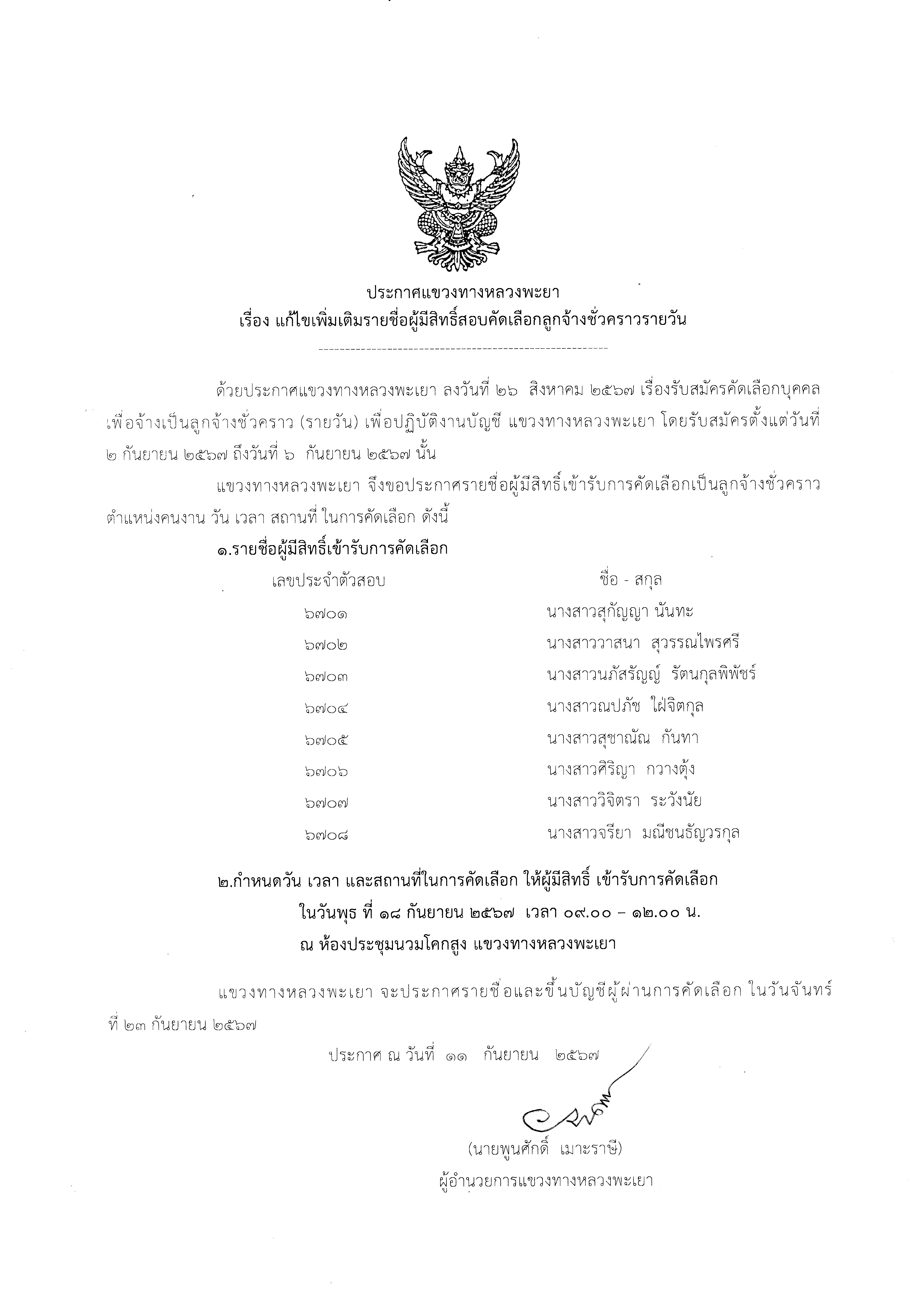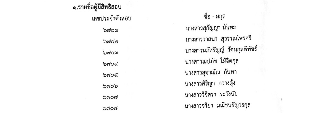 รายชื่อผู้มีสิทธิสอบคัดเลือกลูกจ้างชั่วคราวรายวัน เพื่อปฏิบัติงานบัญชี แขวงทางหลวงพะเยา