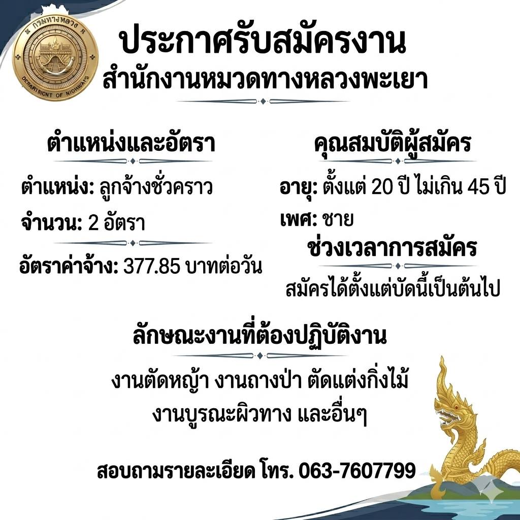 สำนักงานหมวดทางหลวงพะเยา ประกาศรับสมัครงาน