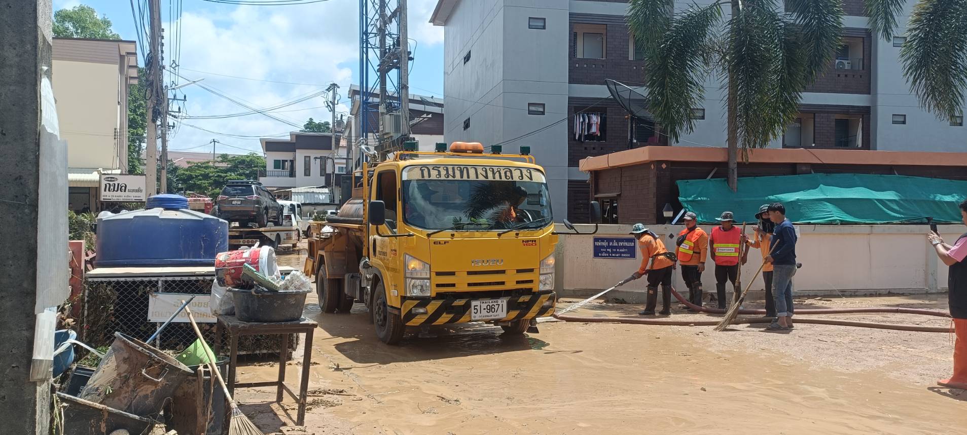 นายพูนศักดิ์ เมาะราษี ผู้อำนวนการแขวงทางหลวงพะเยา มอบหมายให้ นายเอกนรินทร์ มะทะ หัวหน้าหมวดทางหลวงพะเยา พร้อมด้วยหมวดทางหลวงดอกคำใต้ หมวดทางหลวงจุน นำเจ้าหน้าที่ในสังกัด พร้อมด้วยสนับสนุนรถบรรทุกน้ำเข้าทำความสะอาดผิวทาง เก็บกวาดดินโคลน และช่วยเหลือประชาชนในเหตุน้ำป่าไหลหลากบริเวณหน้า มหาวิทายลัยพะเยา ทางหลวงหมายเลข 1 ตอนแม่กา - แยกประตูชัย ช่วง กม.823+000 - กม.824+000 ขวาทาง เพื่ออำนวยความสะดวกให้กับประชาชนที่ได้รับผลกระทบ ตลอดถึงผู้ใช้เส้นทางดังกล่าว