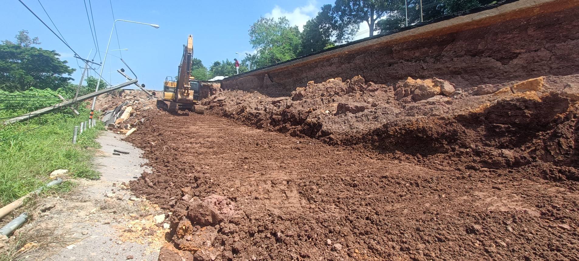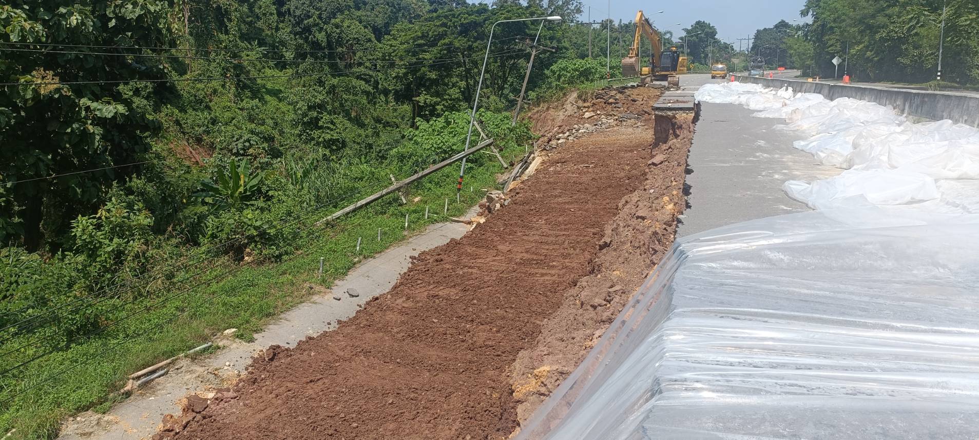 นายพูนศักดิ์ เมาะราษี ผู้อำนวยการแขวงทางหลวงพะเยา ได้ลงพื้นที่เพื่อตรวจสอบ และติดตามความเสียหายเหตุคันทางทรุดตัว ผิวทางและโครงสร้างทางชำรุดเสียหายจำนวน 1 ช่อง(ทางด้านซ้ายขาขึ้นเชียงราย) ทางหลวงหมายเลข 1 ตอนแม่กา - แยกประตูชัย ช่วงกม.815+800 – กม.815+900 โดยแขวงทางหลวงพะเยา ได้ดำเนินการปรับทาง ขึ้น - ลง เตรียมเจาะสำรวจชั้นดินเพื่อนำไปเป็นข้อมูลในการออกแบบกำแพงกันดิน บริเวณที่เกิดการทรุดตัว