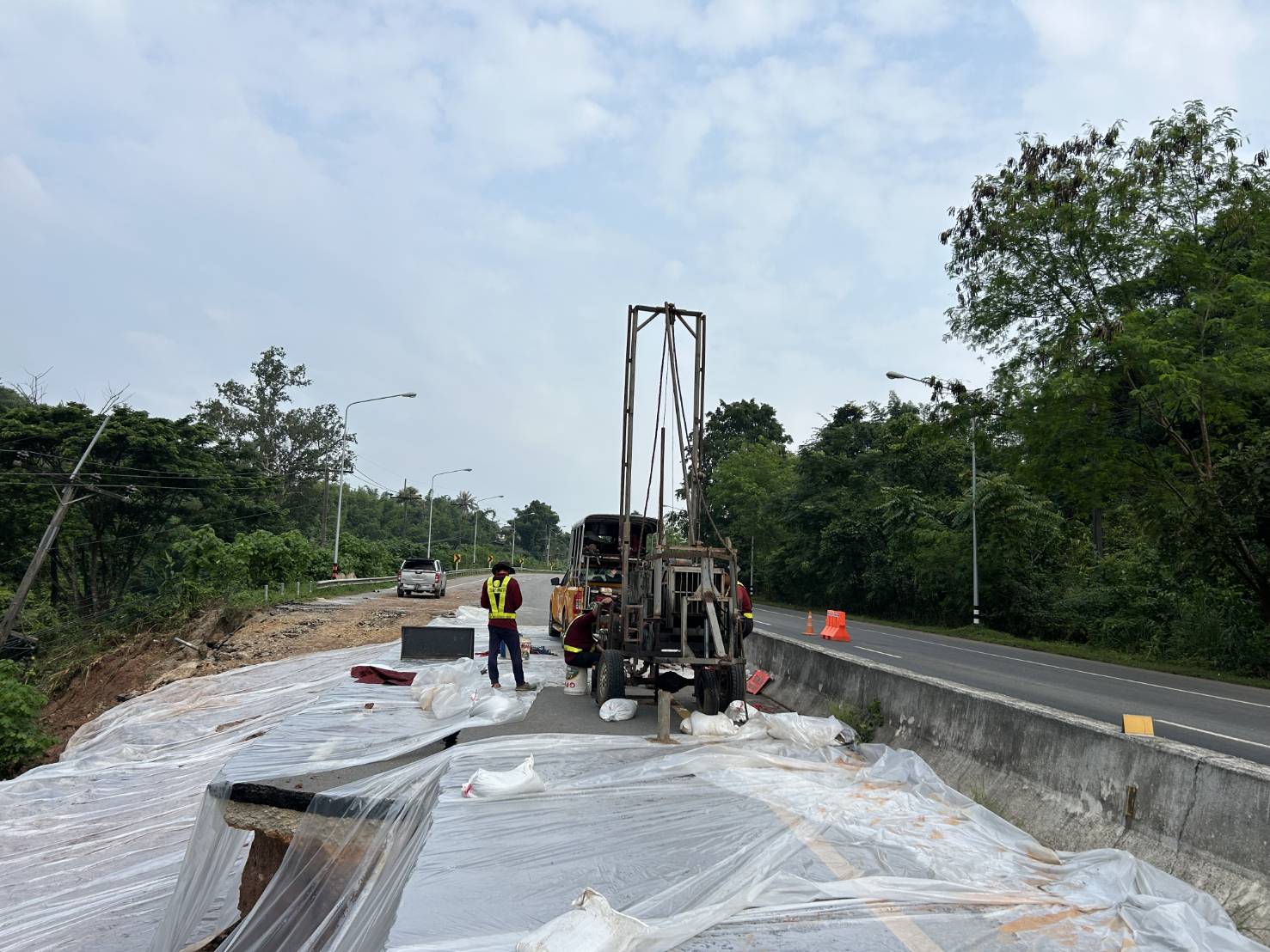 นายพูนศักดิ์ เมาะราษี ผู้อำนวยการแขวงทางหลวงพะเยา ให้การต้อนรับ นายสิทธิชัย วนานุเวชพงศ์ ผู้อำนวยการสำนักงานทางหลวงที่ 2 (แพร่) ได้ลงพื้นที่ติดตามตรวจสอบเจ้าหน้าที่ชุดเจาะสำรวจ จากสำนักวิเคราะห์และตรวจสอบ กรมทางหลวง ดำเนินการเจาะสำรวจชั้นโครงสร้างทางเพื่อประกอบการพิจารณาออกแบบแก้ไขปัญหาถนนทรุดตัว ทางหลวงหมายเลข 1 ตอนแม่กา - แยกประตูชัย ช่วงกม.815+500-กม.815+650