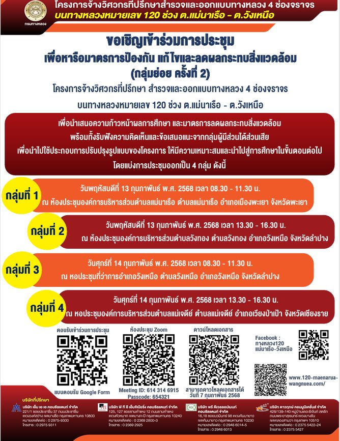 โครงการจ้างวิศวกรที่ปรึกษา สำรวจและออกแบบทางหลวง 4 ช่อง จราจร บนทางหลวงหมายเลข 120 ต.แม่นาเรือ ต.วังเหนือ