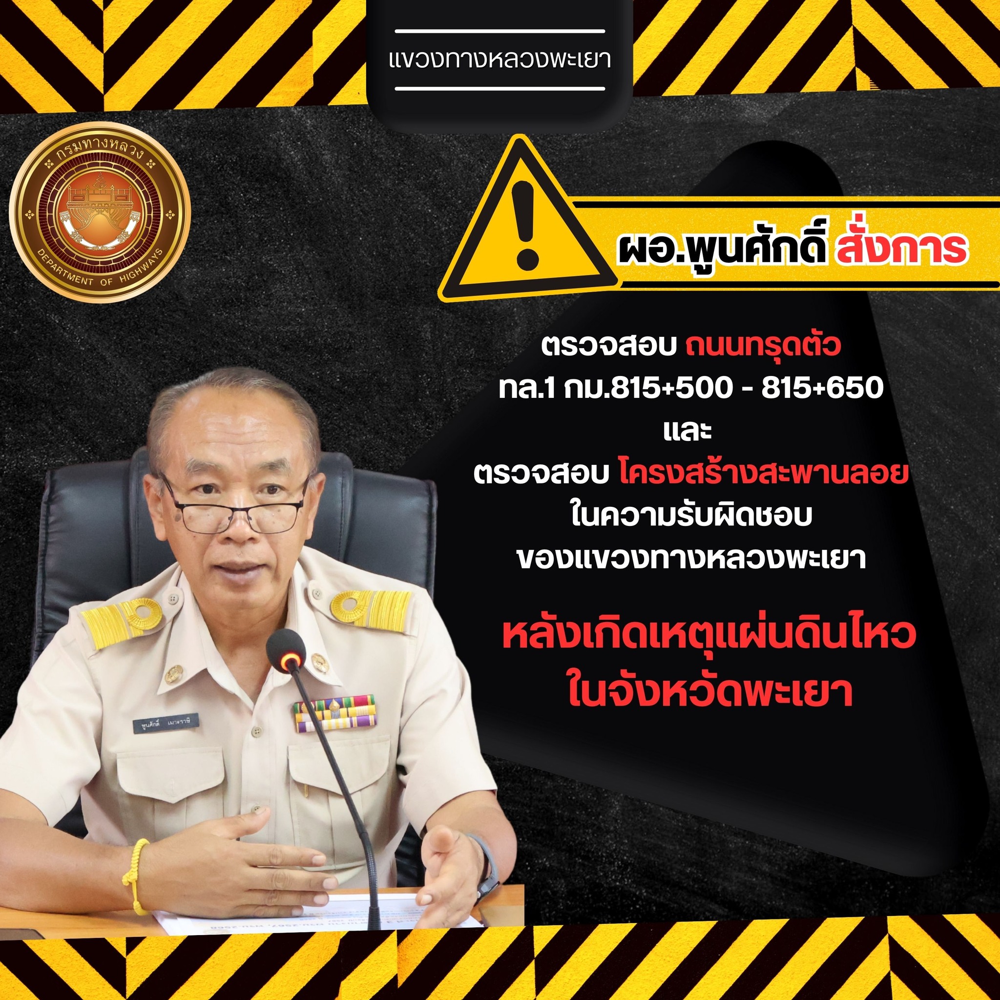 นายพูนศักดิ์ เมาะราษี ผู้อำนวยการแขวงทางหลวงพะเยา หลังเกิดเหตุการณ์แผ่นดินไหวในพื้นที่จังหวัดพะเยา ในเวลา 13.20 น. ได้สั่งการให้หัวหน้าหมวดทางหลวงในสังกัดแขวงทางหลวงพะเยา เข้าตรวจสอบ ถนนทรุดตัว ทล.1 ช่วงกม.815+500 - 815+650 ***(จุดถนนทรุดตัวเดิม เมื่อวันที่ 29 กันยายน 2567)*** และ ตรวจสอบ โครงสร้างสะพานลอย รายละเอียดการตรวจสอบดังนี้...