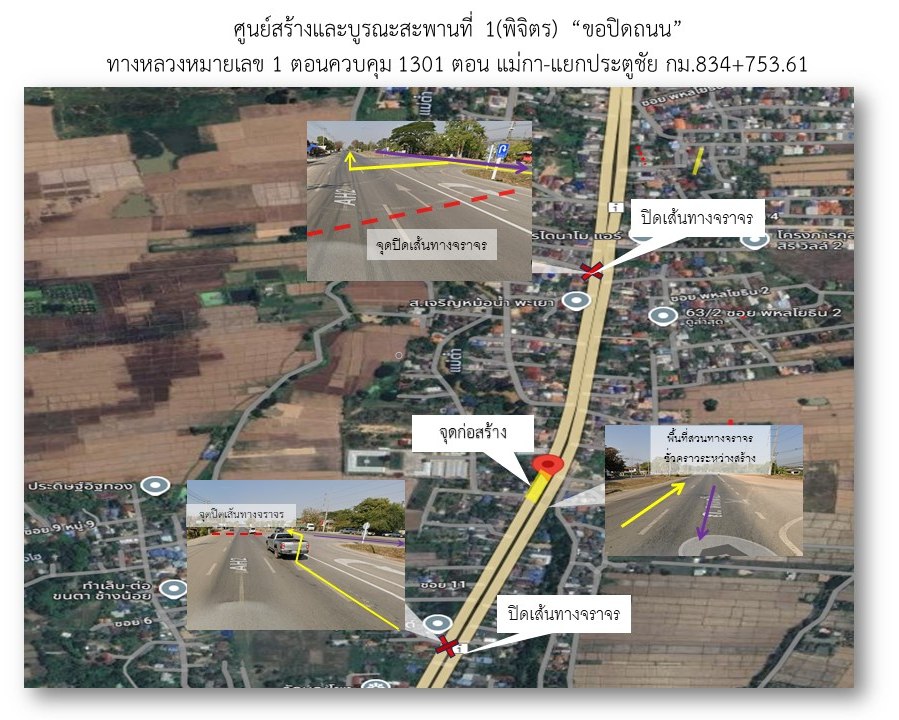 ด้วยศูนย์สร้างและบูรณะสะพานที่ 1 (พิจิตร) จะดำเนินการก่อสร้างสะพาน คสล. บนทางหลวงหมายเลข 1 ตอน แม่กา - แยกประตูชัย ดำเนินการที่ กม.834+753.61 LT. และ กม.837+000.5 LT.