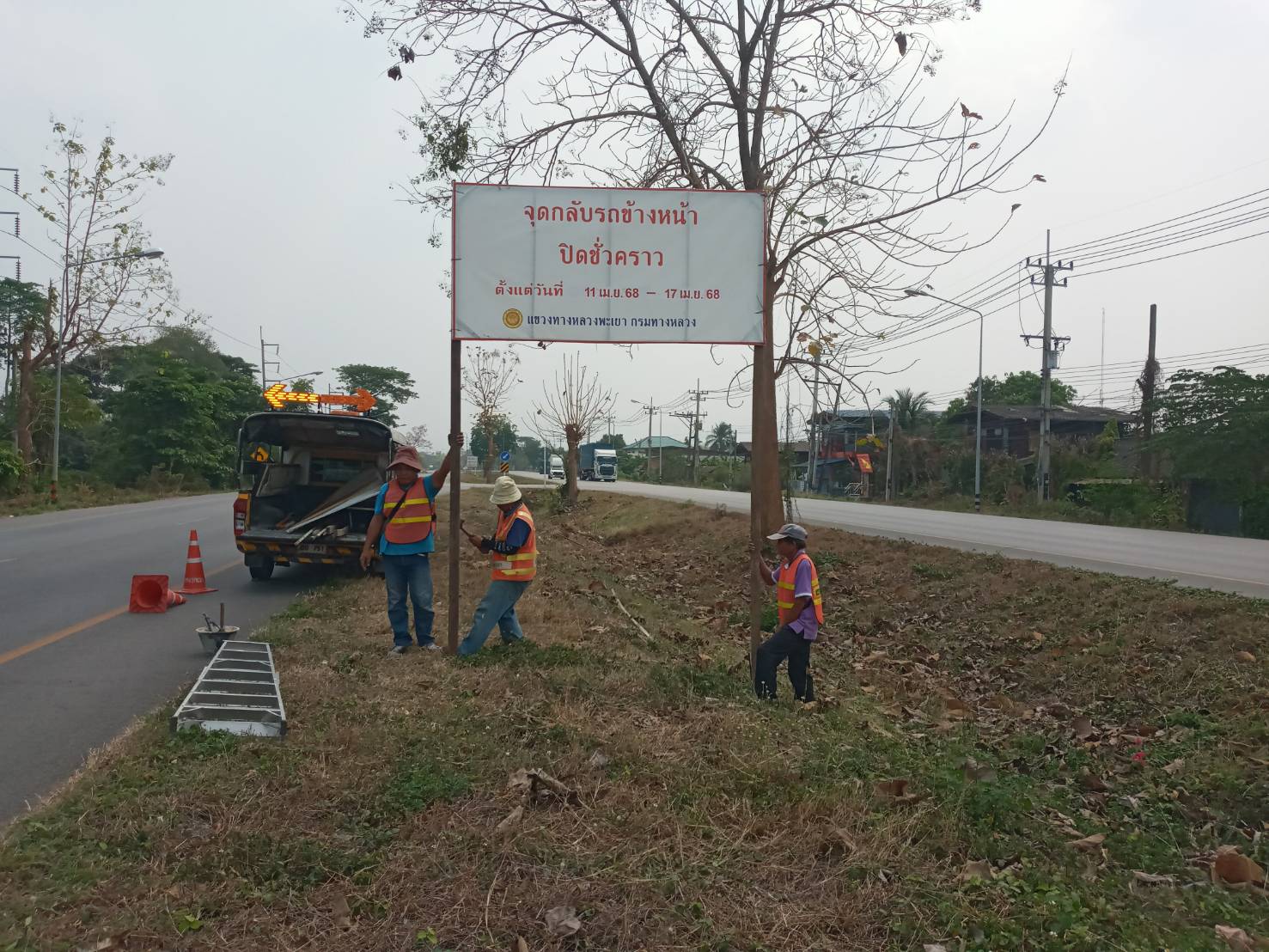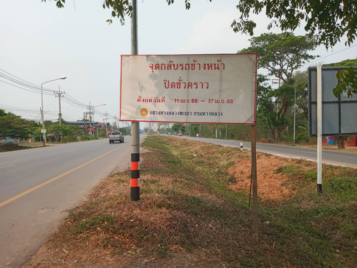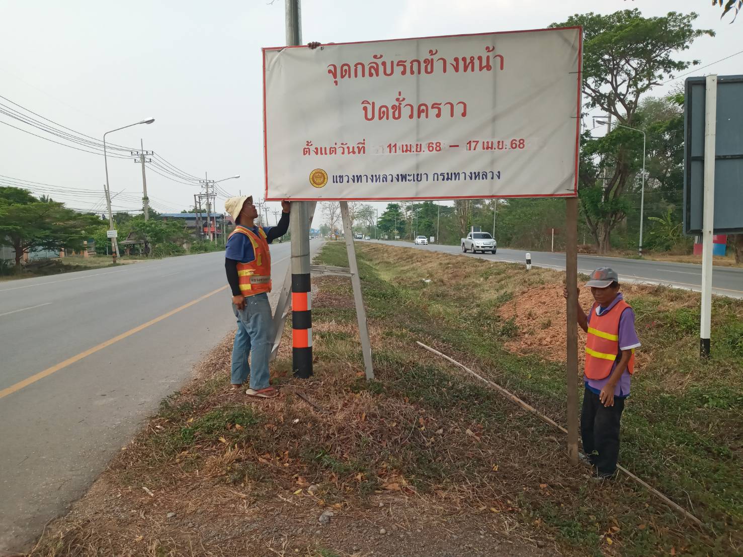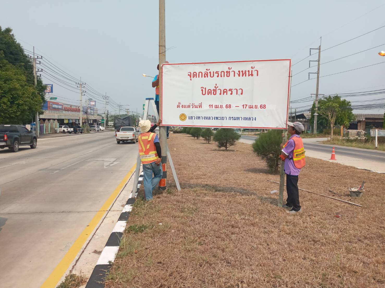 นายพูนศักดิ์ เมาะราษี ผู้อำนวยการแขวงทางหลวงพะเยา มอบหมายให้ งานอำนวยความปลอดภัย แขวงทางหลวงพะเยา ติดตั้งป้ายประชาสัมพันธ์ ปิดจุดกลับรถ(U-TURN) ช่วงเทศกาลสงกรานต์ ประจำปี 2568 ตั้งแต่วันที่ 11 เมษายน 2568 - 17 เมษายน 2568 เพื่อความปลอดภัย และลดจุดเสี่ยงการเกิดอุบัติเหตุในช่วงเทศกาลสงกรานต์