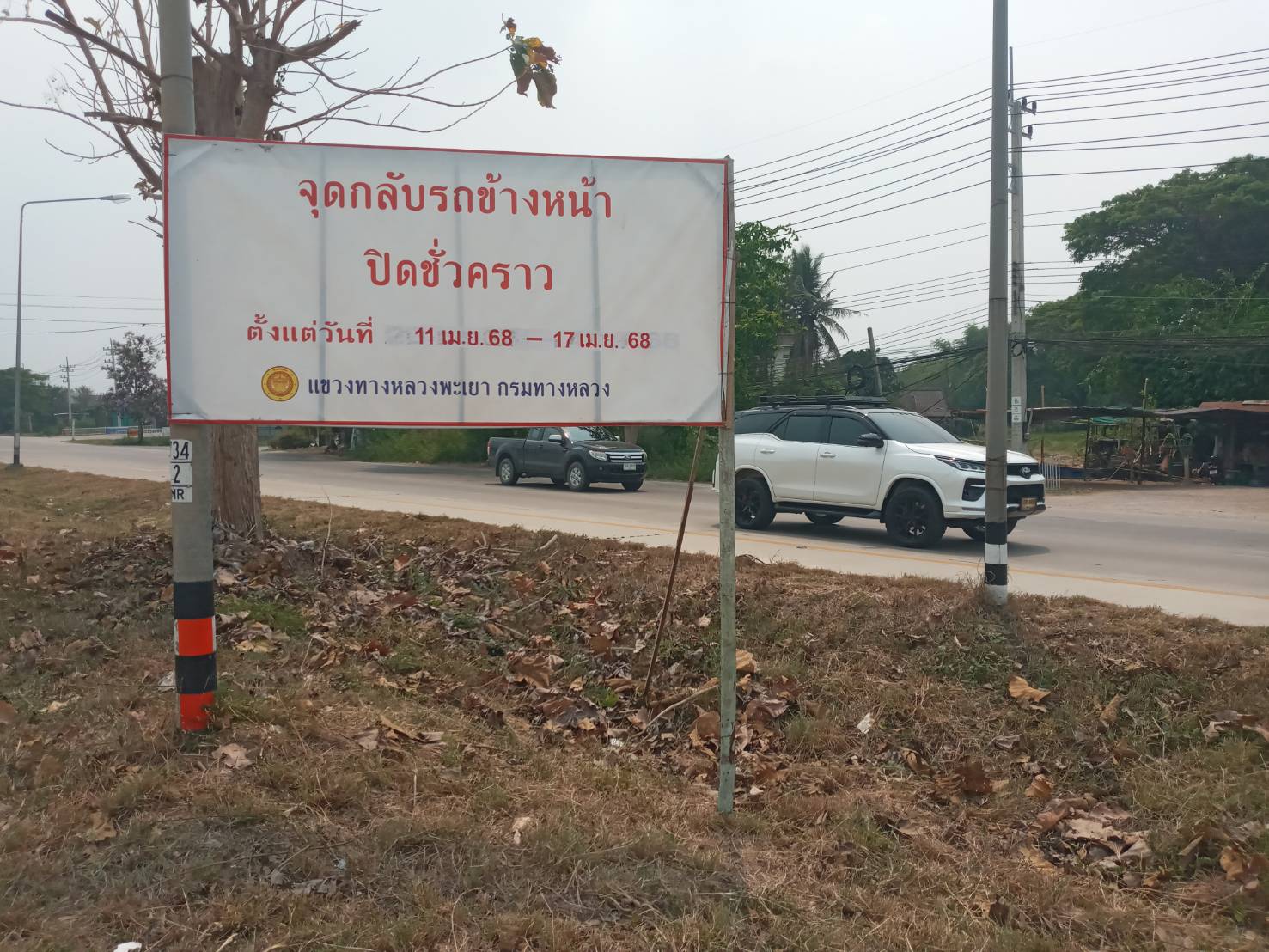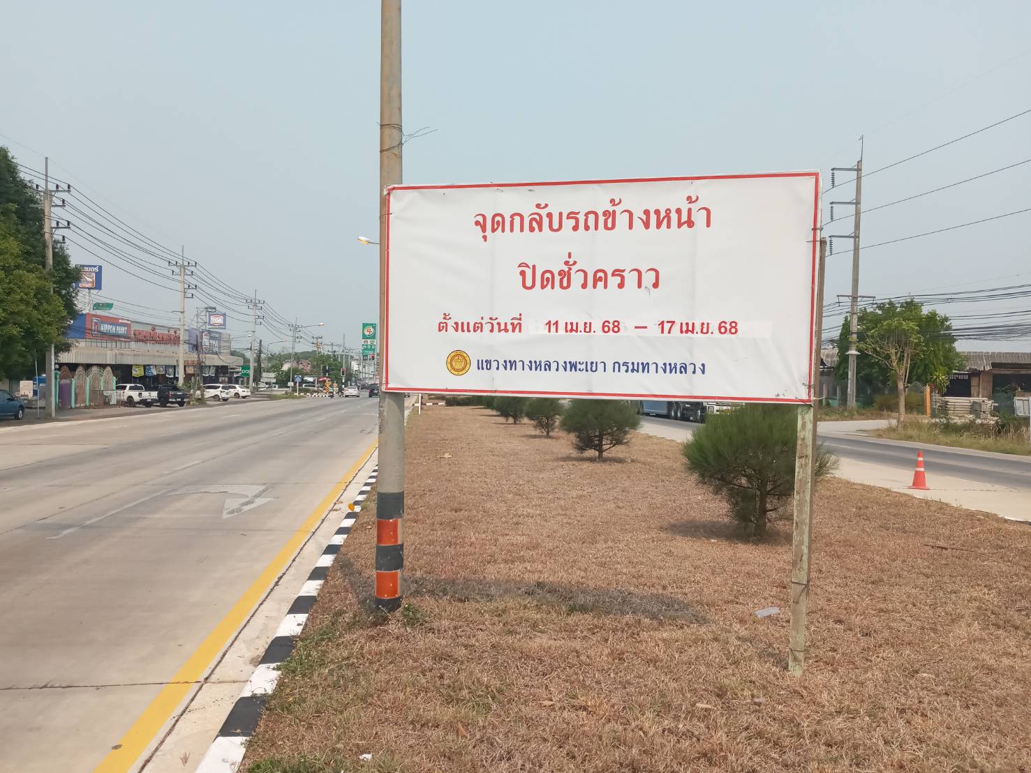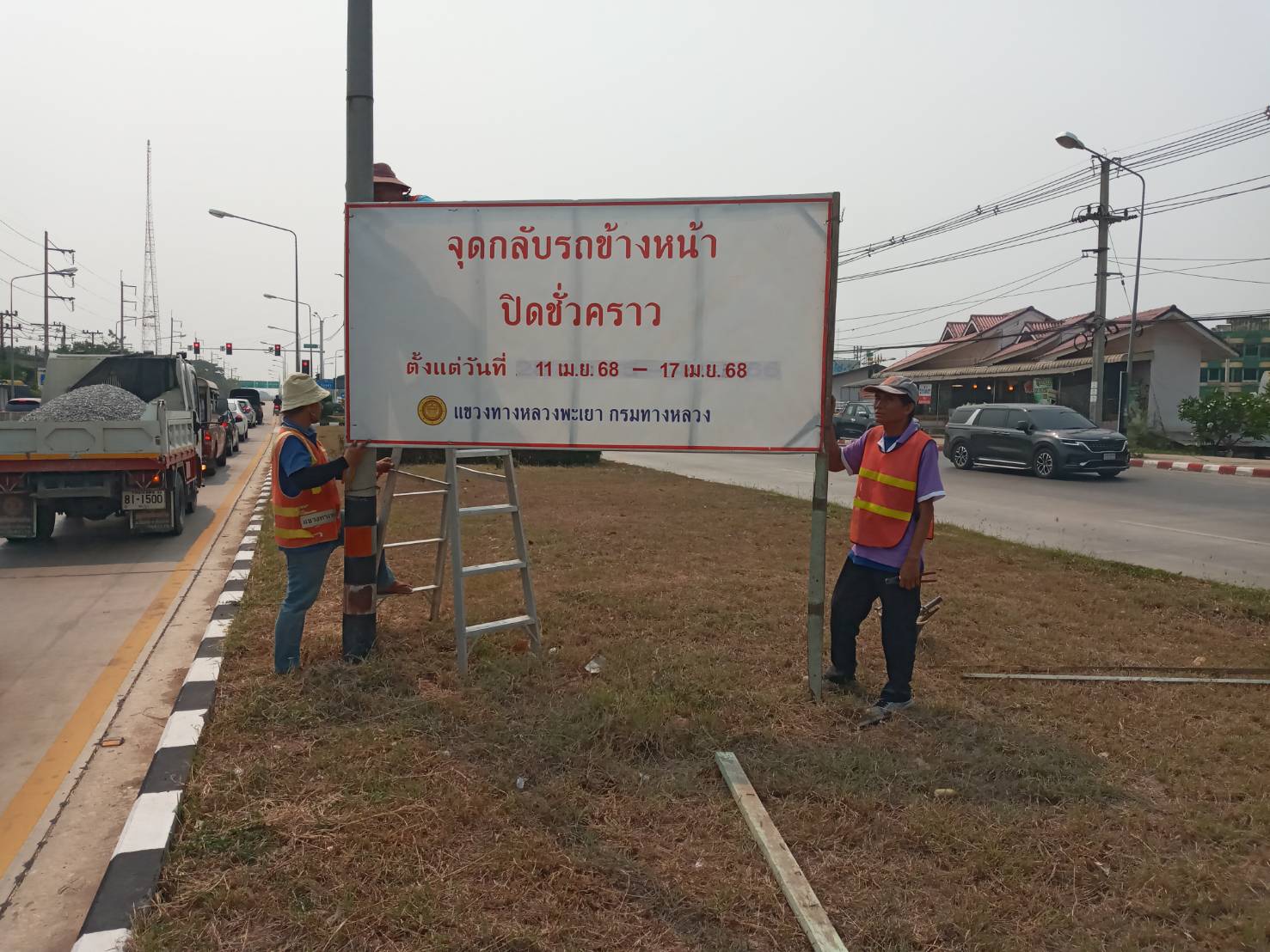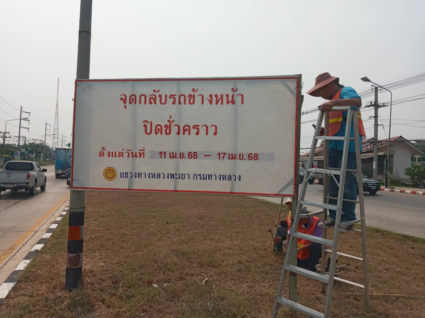 นายพูนศักดิ์ เมาะราษี ผู้อำนวยการแขวงทางหลวงพะเยา มอบหมายให้ งานอำนวยความปลอดภัย แขวงทางหลวงพะเยา ติดตั้งป้ายประชาสัมพันธ์ ปิดจุดกลับรถ(U-TURN) ช่วงเทศกาลสงกรานต์ ประจำปี 2568 ตั้งแต่วันที่ 11 เมษายน 2568 - 17 เมษายน 2568 เพื่อความปลอดภัย และลดจุดเสี่ยงการเกิดอุบัติเหตุในช่วงเทศกาลสงกรานต์