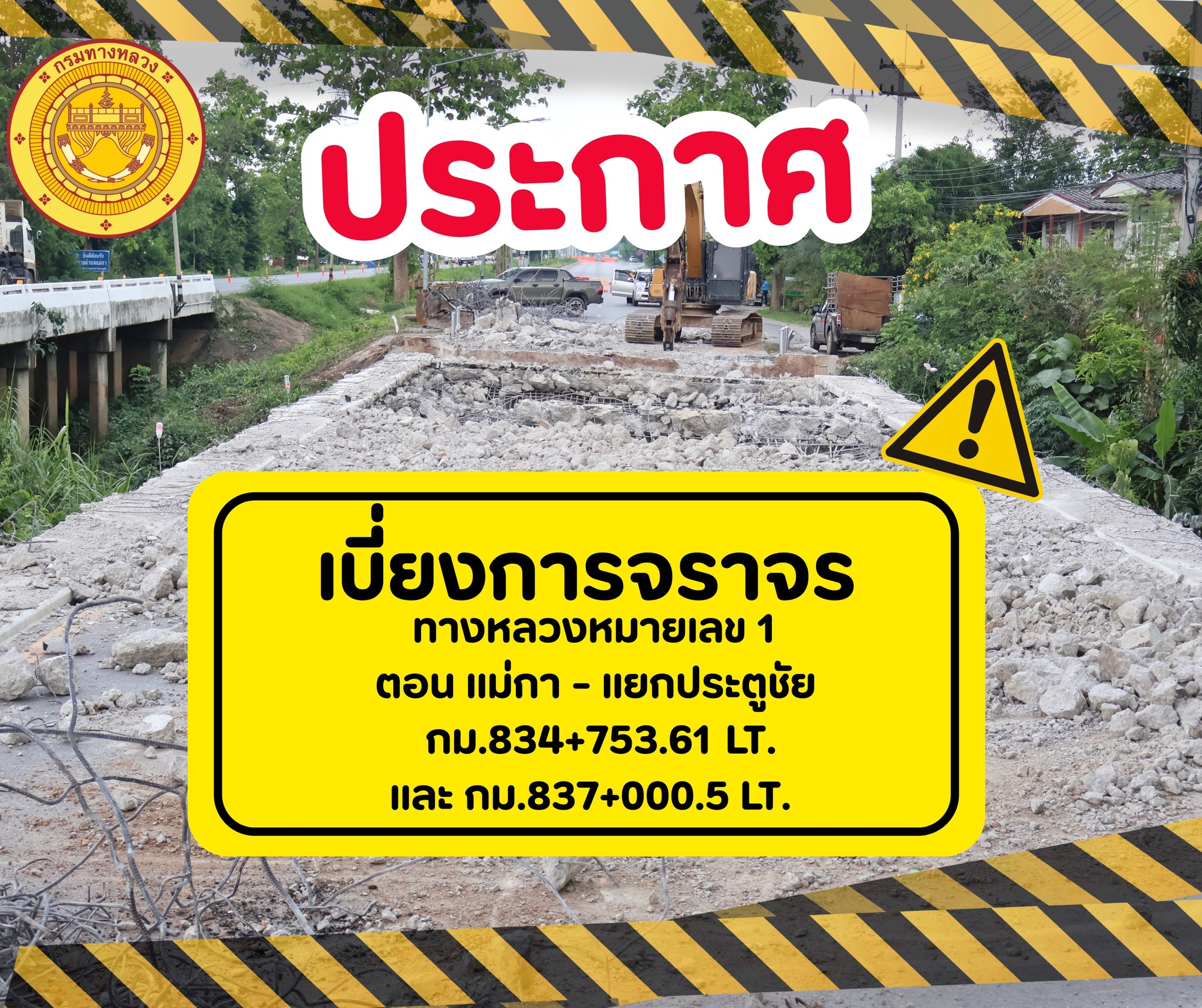 - จึงขออภัยในความไม่สะดวก โปรดใช้เส้นทางด้วยความระมัดระวัง และขอความร่วมมือในการปฏิบัติตามป้ายแนะนำ ป้ายเตือน ในพื้นที่ก่อสร้างเพื่อความปลอดภัยของผู้ใช้ทางดังกล่าว สอบถามข้อมูลเพิ่มเติมได้ที่ : นายพรพิพัฒน์ โสธนะ ตำแหน่งวิศวกรโยธาปฏิบัติการ เบอร์โทรศัพท์ 093-135-5335