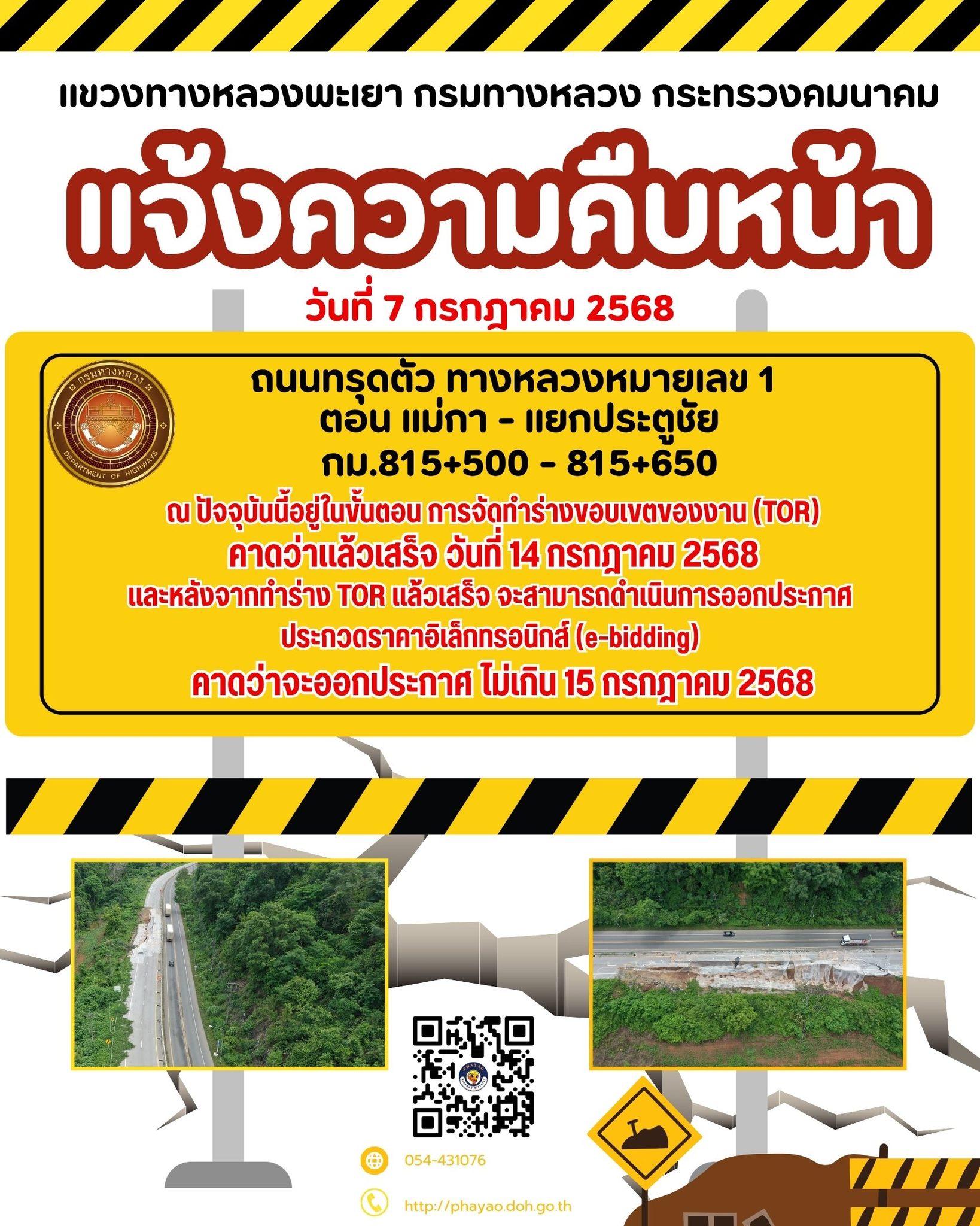 แขวงทางหลวงพะเยา ขอประชาสัมพันธ์แจ้งความคืบหน้าของโครงการดังกล่าวดังนี้ ...