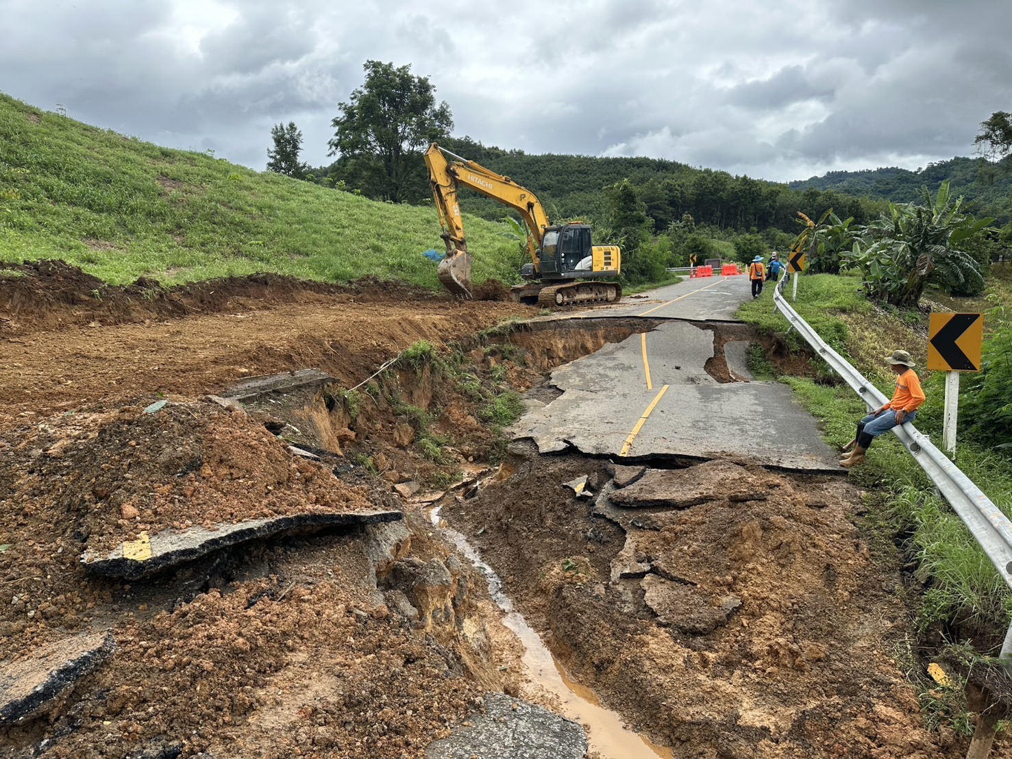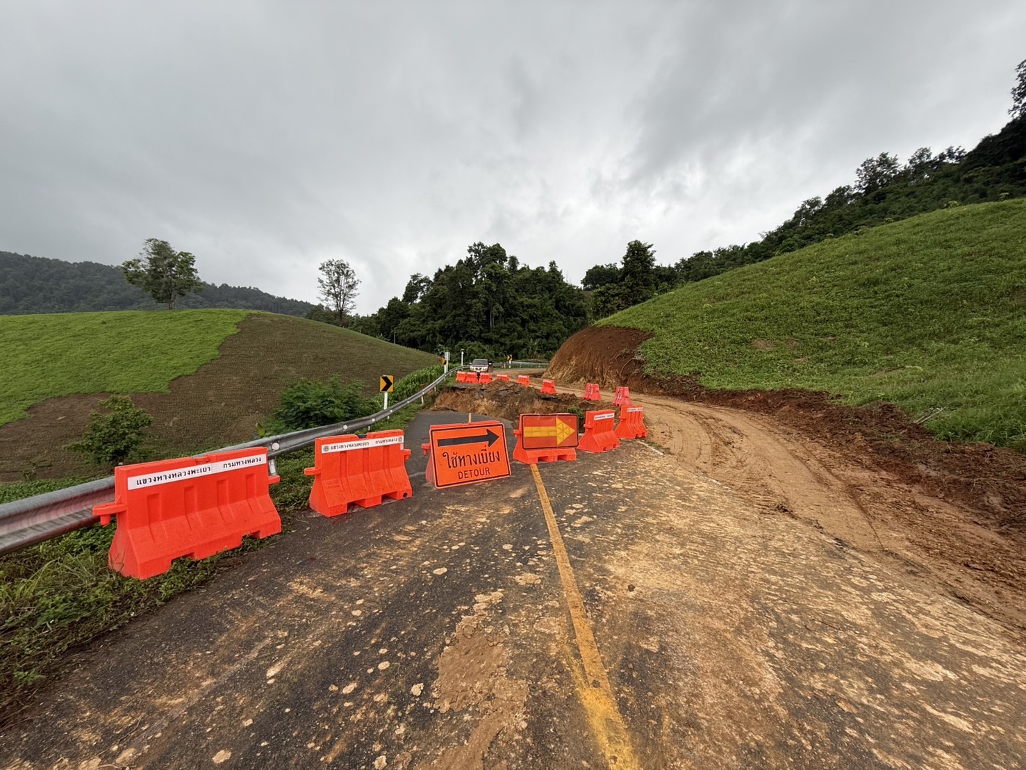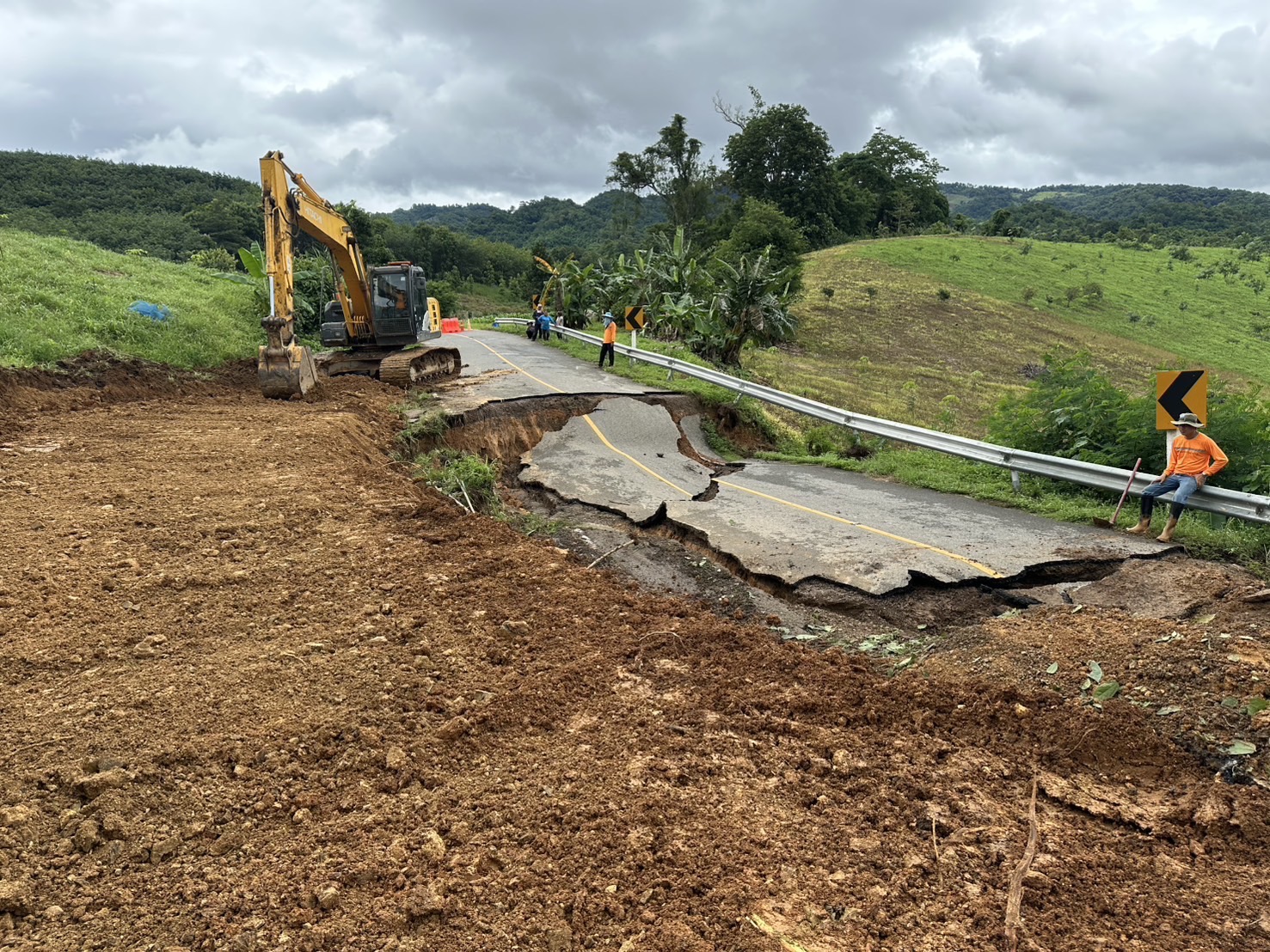 เกิดเหตุถนนขาด ทางหลวงหมายเลข 1188 ตอนปง - ห้วยกอก ช่วงกม.32+000 - กม.32+040 พื้นที่ ต.ผาช้างน้อย อ.ปง จ.พะเยา