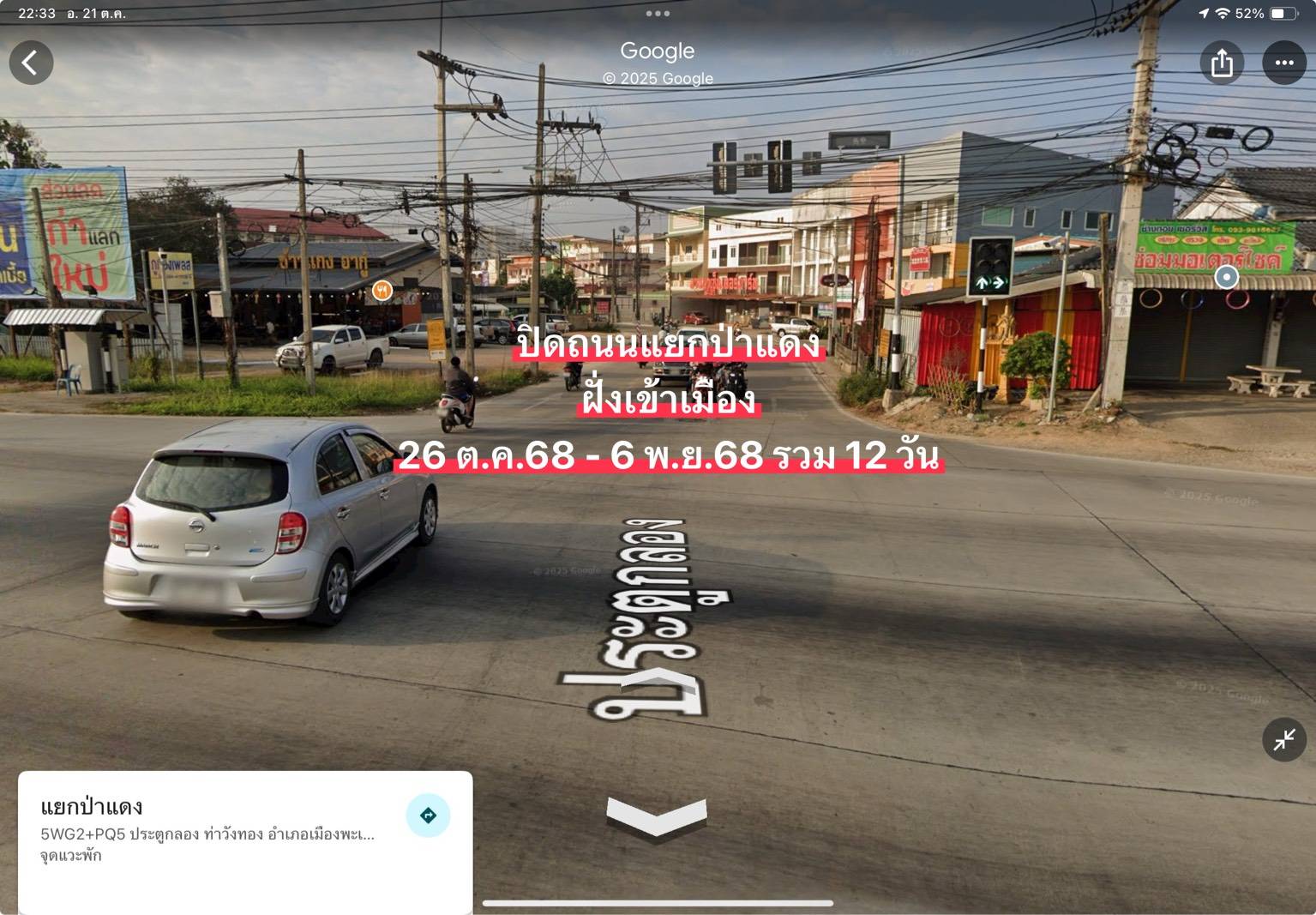 แจ้งปิดทางแยกป่าแดง ตอน แยกประตูชัย - พาน กม.840+350 (ด้านซ้ายทาง) ฝั่งถนนประตูกลอง ตั้งแต่วันที่ 26 ตุลาคม 2568 - 6 พฤศจิกายน 2568 (รวม 12 วัน)