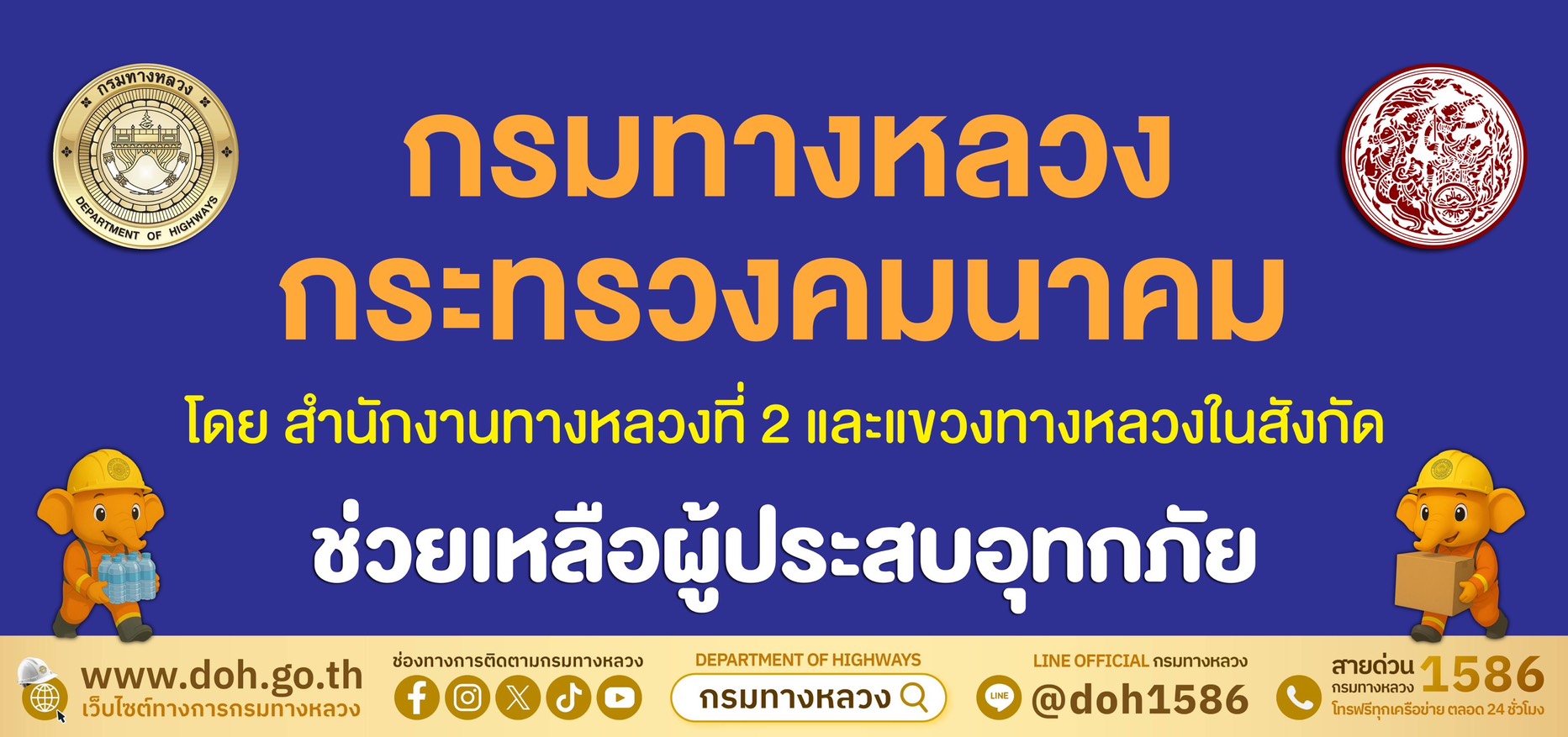 กรมทางหลวง กระทรวงคมนาคม โดย สำนักงานทางหลวงที่ 2 (แพร่) และ แขวงทางหลวงในสังกัด ดำเนินการช่วยเหลือผู้ประสบอุทกภัยภาคใต้ โดยดำเนินการจัดถุงยังชีพ ประกอบด้วย อาหารแห้ง อาหารสำเร็จรูป การดาษชำระ และน้ำดื่ม เพื่อร่วมเป็นส่วนหนึ่งในการช่วยเหลือผู้ประสบภัยอย่างเร่งด่วน