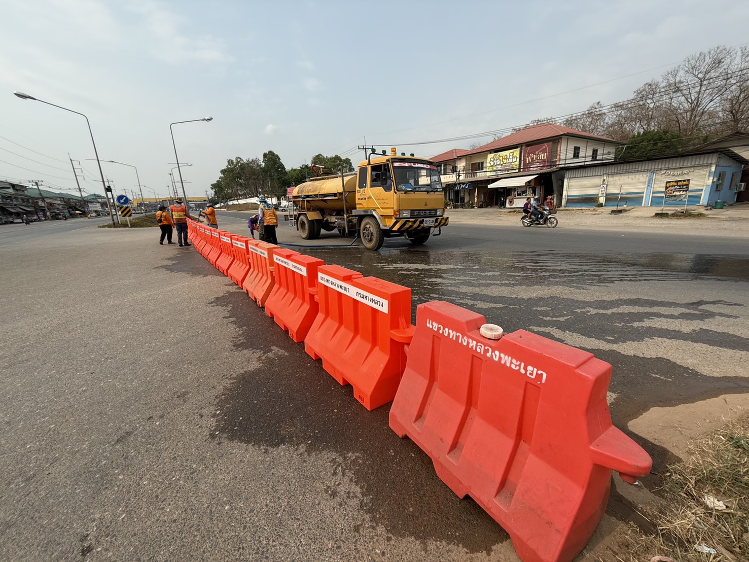 แขวงทางหลวงพะเยา ร่วมกับ สถานีภูธรตำรวจแม่กา จังหวัดพะเยา ดำเนินการปิดกั้นจราจร (จุดยูเทิร์น) เพื่อควบคุม และจัดการจราจร ทางหลวงหมายเลข 1 ตอน แม่กา - แยกประตูชัย บริเวณ กม.822+890