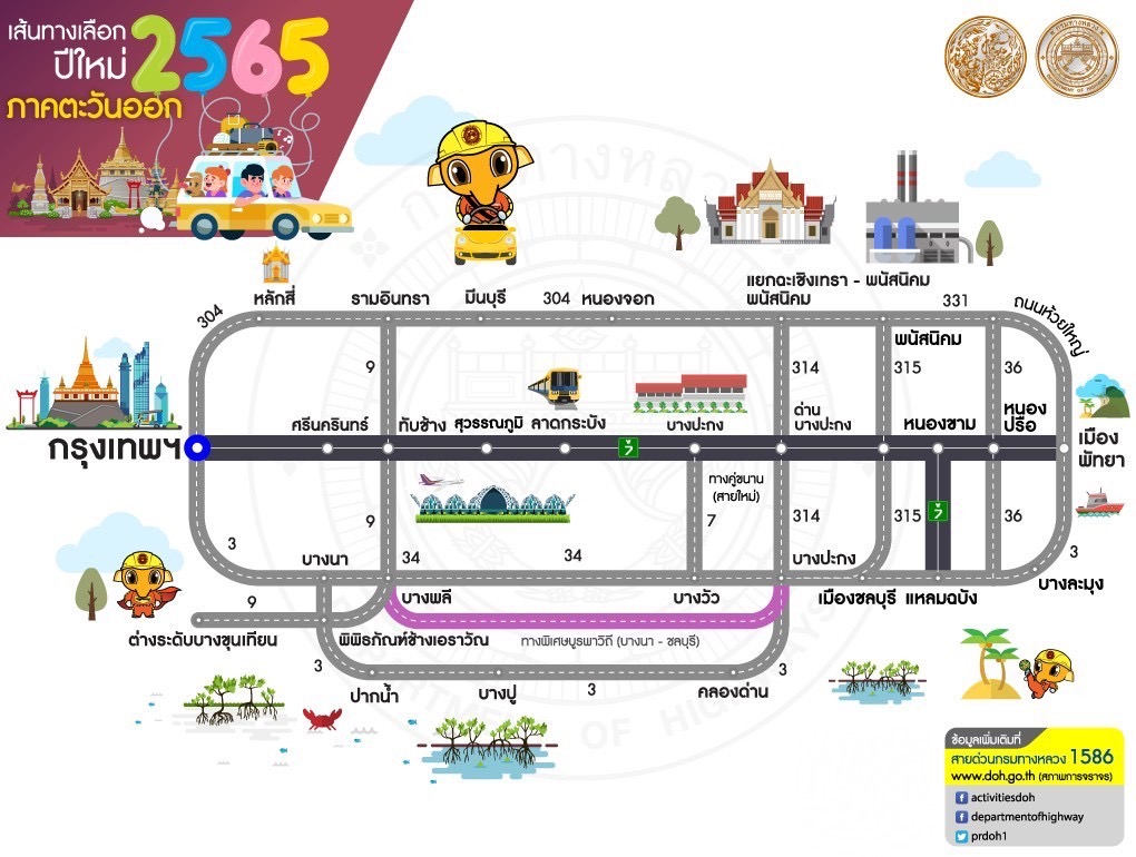 กรมทางหลวง แนะนำเส้นทางเลือกจากกรุงเทพฯสู่ภูมิภาคต่างๆ ช่วงเทศกาลปีใหม่ 2565 เพื่อให้ผู้ใช้ทางได้รับความสะดวกรวดเร็วในการเดินทาง สอบถามโทร 1586