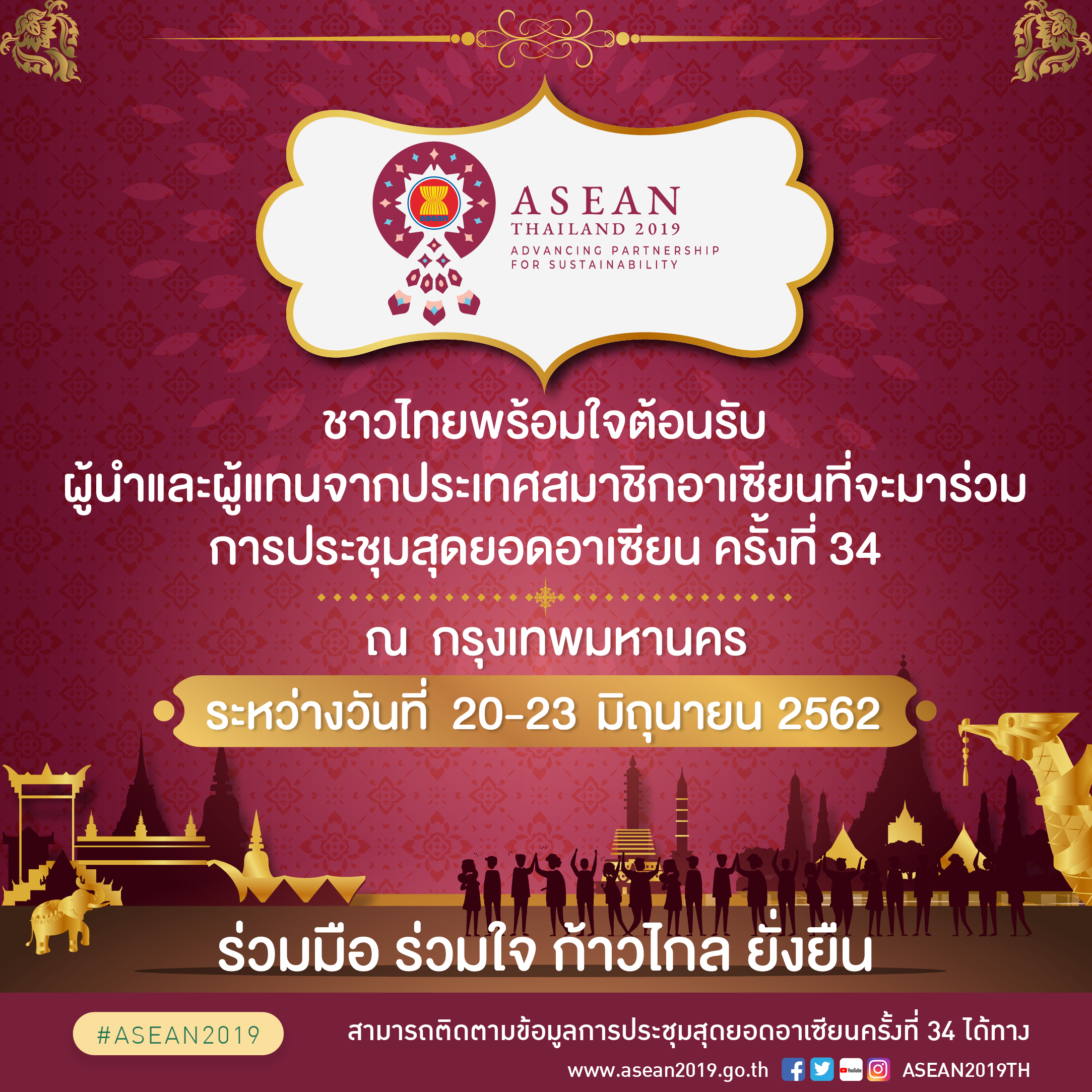 ชาวไทยพร้อมใจต้อนรับผู้นำและผู้แทนจากประเทศสมาชิกอาเซียนที่จะมาร่วมการประชุมสุดยอดอาเซียน ครั้งที่34 ณ กรุงเทพมหานคร