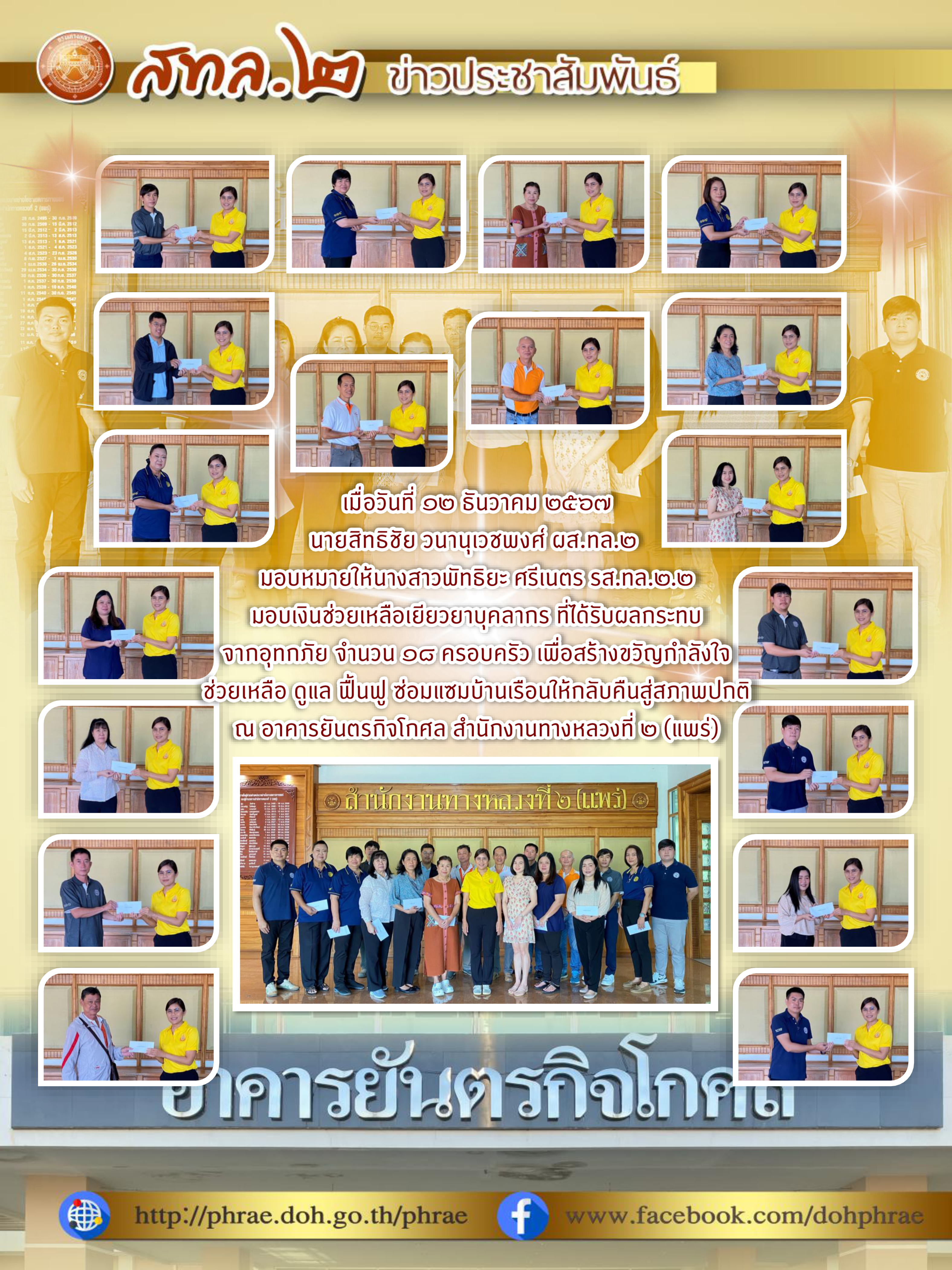มอบเงินช่วยเหลือเยียวยาบุคลากร ที่ได้รับผลกระทบจากอุทกภัย จำนวน 18 ครอบครัว