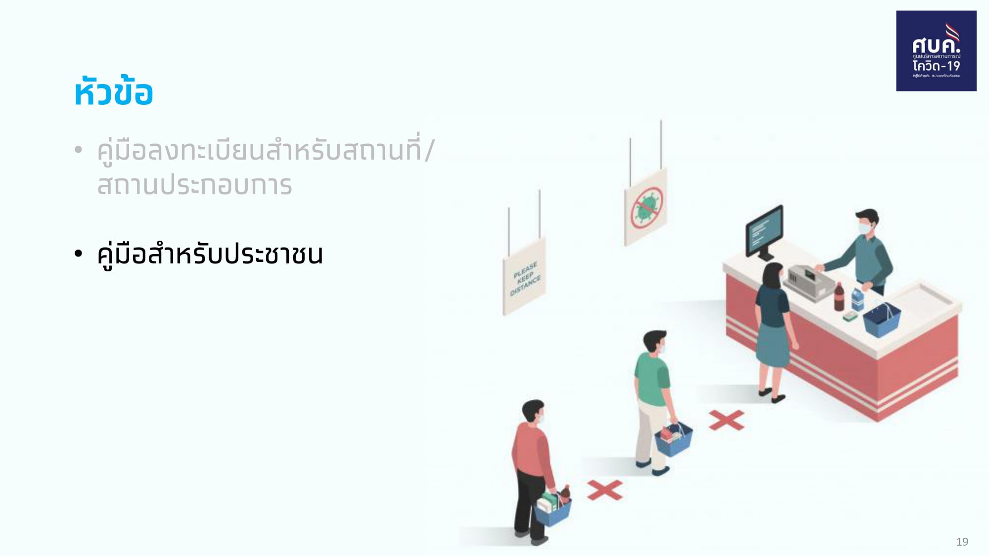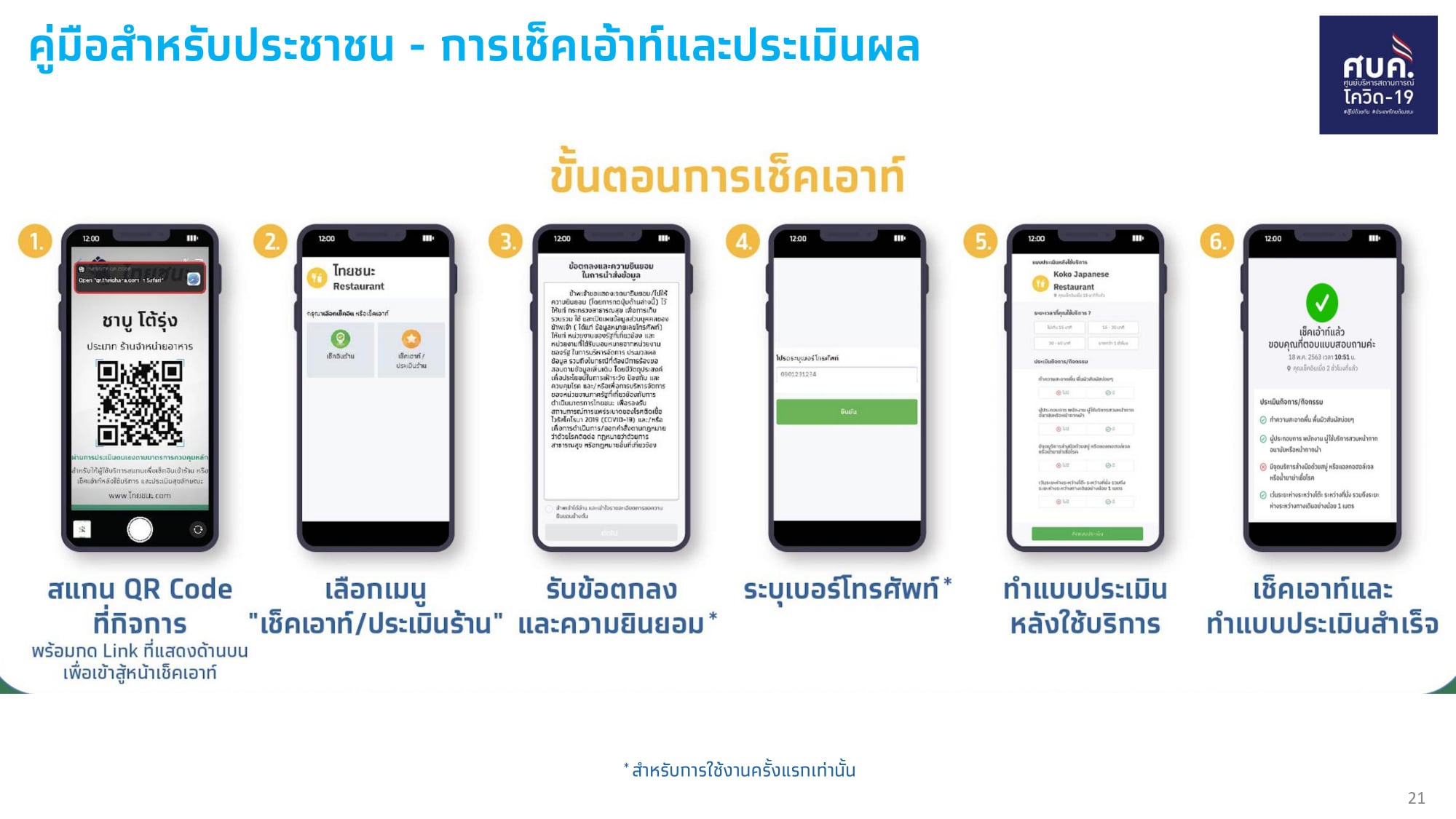 สำหรับหน่วยงานภาครัฐ เพื่อใช้ในการจัดเก็บข้อมูล โดยประชาชนที่มาติดต่อราชการต้องเช็กอินและเช็กเอาต์ ก่อนและหลังการใช้บริการ