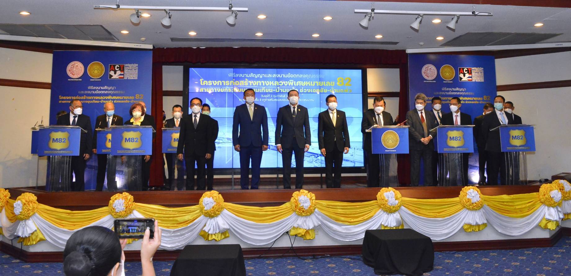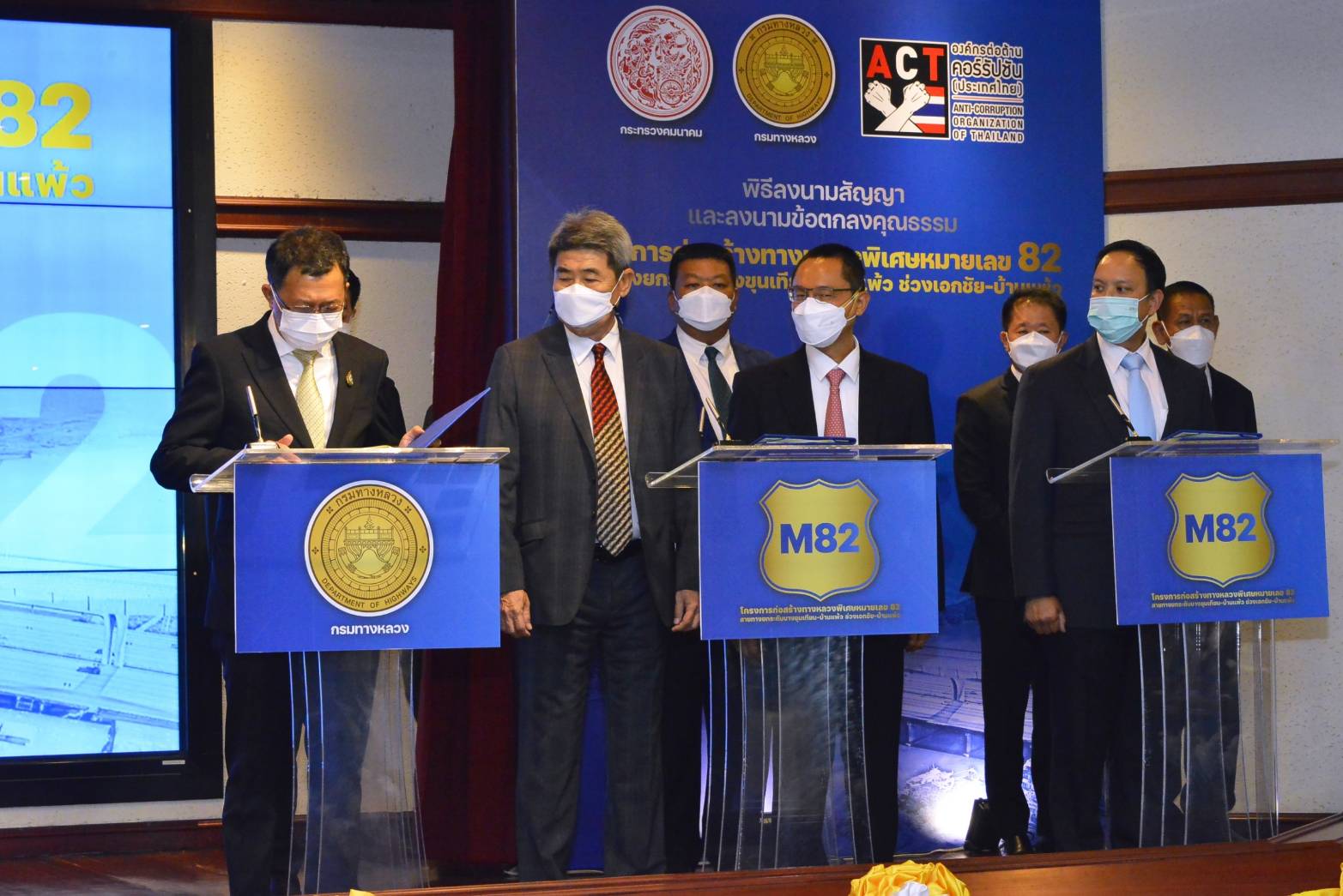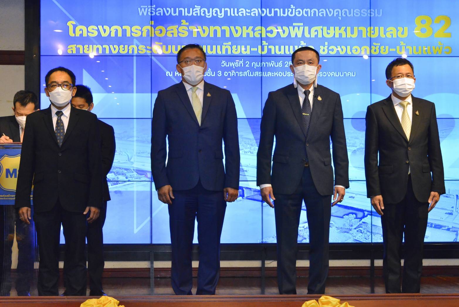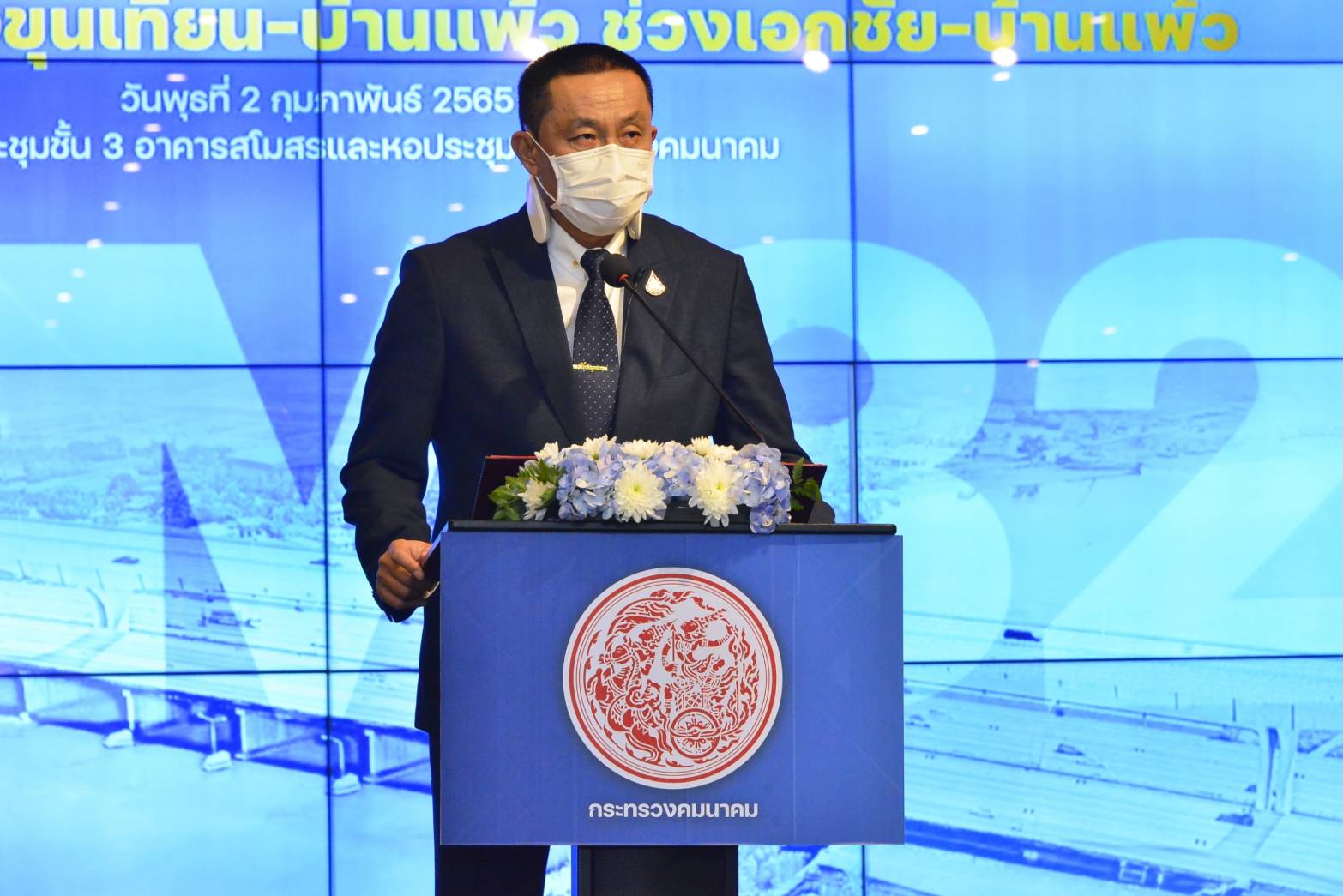 นายศักดิ์สยาม ชิดชอบ รัฐมนตรีว่าการกระทรวงคมนาคม เป็นประธานในพิธีลงนามสัญญาและลงนามข้อตกลงคุณธรรม (Integrity Pact : IP) โครงการก่อสร้างทางหลวงพิเศษหมายเลข 82 สายทางยกระดับบางขุนเทียน - บ้านแพ้ว ช่วงเอกชัย - บ้านแพ้ว ตอน 1 - 10 โดยมี นางสุขสมรวย วันทนียกุล เลขานุการรัฐมนตรีว่าการกระทรวงคมนาคม นายชยธรรม์ พรหมศร ปลัดกระทรวงคมนาคม นายพิศักดิ์ จิตวิริยะวศิน นายอานนท์ เหลืองบริบูรณ์ นายสรพงศ์ ไพฑูรย์พงษ์ รองปลัดกระทรวงคมนาคม นายสราวุธ ทรงศิวิไล อธิบดีกรมทางหลวง คณะผู้บริหารกระทรวงคมนาคม ผู้บริหาร และตัวแทนกลุ่มบริษัทผู้รับจ้างก่อสร้าง ผู้สังเกตการณ์ตามข้อตกลงคุณธรรม และสื่อมวลชนเข้าร่วมงาน ในวันที่ 2 กุมภาพันธ์ 2565 ณ ห้องประชุมอาคารสโมสรและหอประชุม กระทรวงคมนาคม