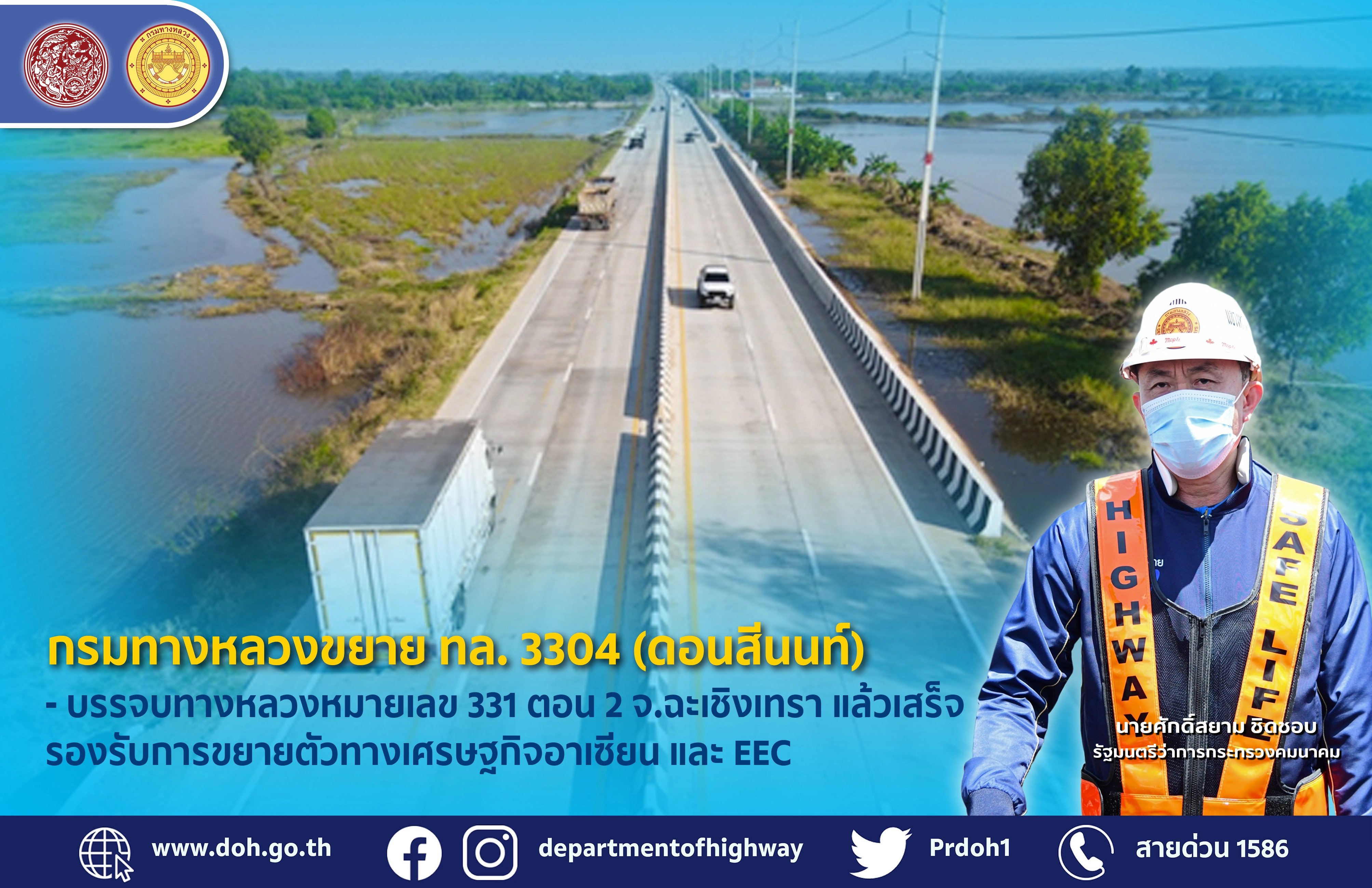 กรมทางหลวงขยาย ทล.3304 (ดอนสีนนท์) – บรรจบทางหลวงหมายเลข 331 (แปลงยาว) จ.ฉะเชิงเทรา แล้วเสร็จ รองรับการขยายตัวทางเศรษฐกิจของอาเซียน และ EEC