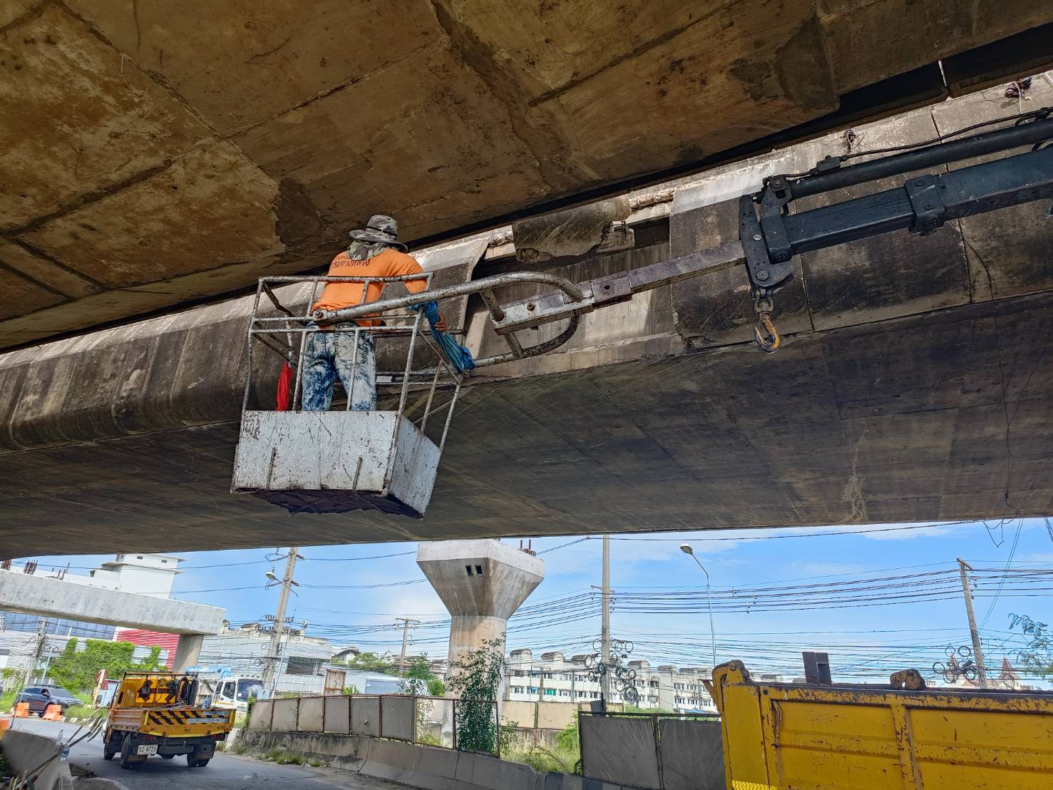 กรมทางหลวง เร่งรื้อแผงกั้นคอนกรีตที่ชำรุดบนสะพานข้ามถนนพระราม 2 (มหาชัยเมืองใหม่) แล้วเสร็จ พร้อมเปิดการจราจรตามปกติเพื่ออำนวยความสะดวกปลอดภัยให้ประชาชน
