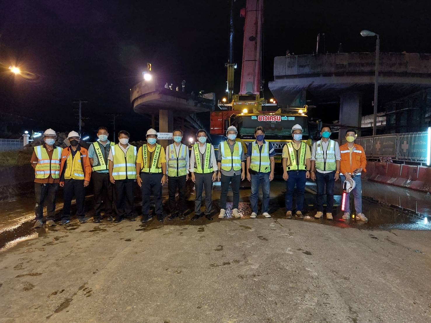 3. การแต่งตั้งคณะกรรมการตรวจสอบข้อเท็จจริง : กรมทางหลวง ได้แต่งตั้งคณะกรรมการตรวจสอบข้อเท็จจริงและหาสาเหตุของการเกิดอุบัติเหตุดังกล่าว โดยมีวิศวกรใหญ่ด้านควบคุมการก่อสร้างเป็นประธาน และวิศวกรผู้เชี่ยวชาญด้านวิศวกรรมโครงสร้างสะพานของกรมทางหลวง เป็นคณะกรรมการ ทั้งนี้ เพื่อให้ผลการตรวจสอบข้อเท็จจริงมีความโปร่งใสและเป็นที่ยอมรับ กรมทางหลวงได้ขอความอนุเคราะห์จากองค์กรวิชาชีพภายนอก ได้แก่ ผู้แทน วิศวกรรมสถานแห่งประเทศไทย ในพระบรมราชูปถัมภ์ (วสท.) และผู้แทน สภาวิศวกร ซึ่งเป็นองค์กรที่ได้รับการยอมรับและมีบุคลากรที่เชี่ยวชาญทางด้านวิศวกรรมโยธา เข้าร่วมเป็นคณะกรรมการตรวจสอบข้อเท็จจริงด้วย โดยจะทราบผลภายใน 14 วัน