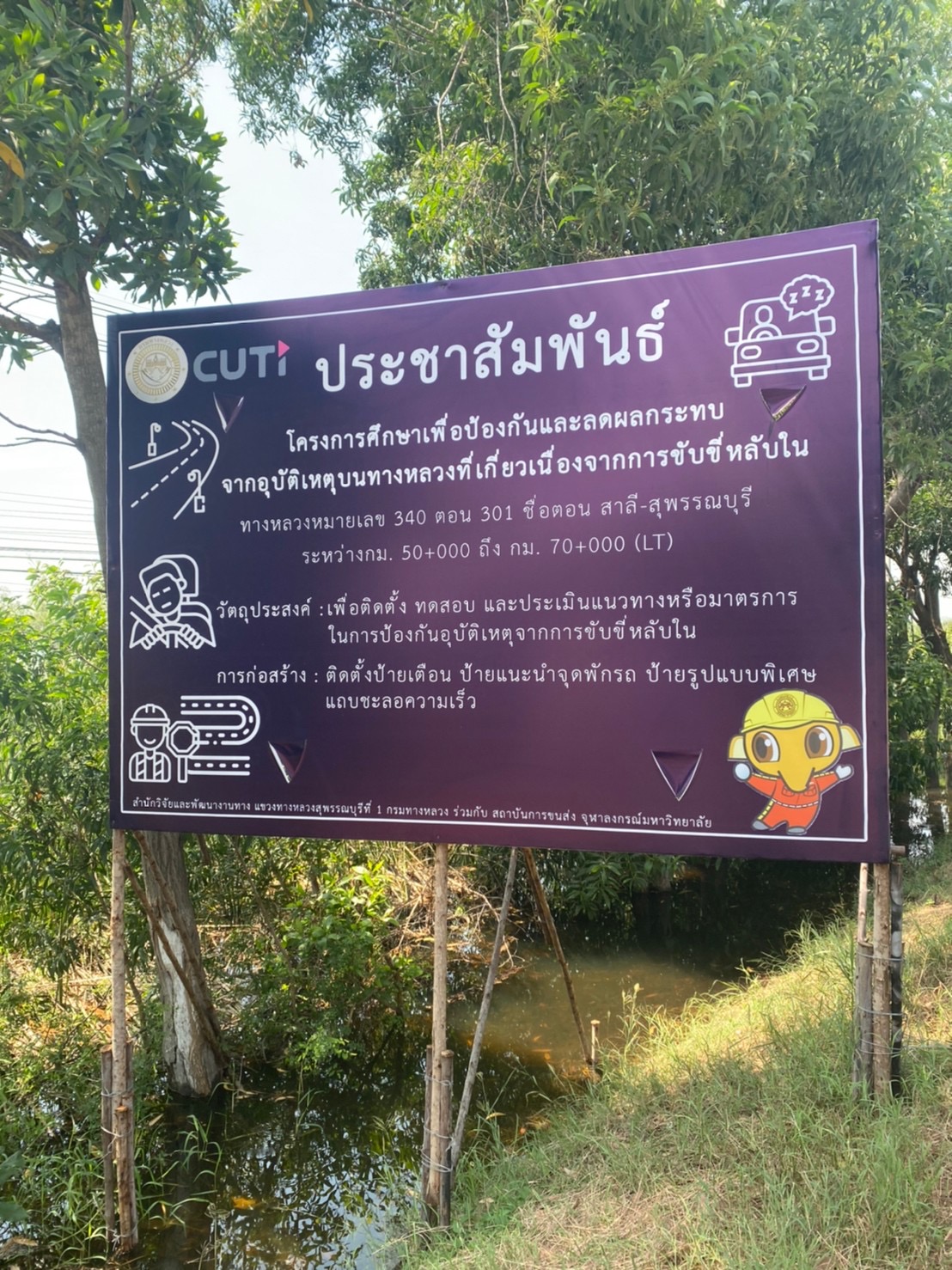 กรมทางหลวง โดยสำนักวิจัยและพัฒนางานทาง ได้ดำเนินการ “โครงการศึกษาเพื่อป้องกันและลดผลกระทบจากอุบัติเหตุบนทางหลวงที่เกี่ยวเนื่องจากการขับขี่หลับใน” ร่วมกับ สถาบันขนส่ง จุฬาลงกรณ์มหาวิทยาลัย สำหรับโครงการดังกล่าวดำเนินการเพื่อป้องกัน และลดผลกระทบจากอุบัติเหตุบนทางหลวงที่เกี่ยวเนื่องจากการขับขี่หลับใน ทำให้ทราบถึงปัจจัยและสาเหตุที่ก่อให้เกิดความเสี่ยงต่อการเกิดอุบัติเหตุบนทางหลวง ซึ่งผลการดำเนินการจะสรุปเป็นแนวทางและมาตรการอำนวยความปลอดภัยที่มีประสิทธิภาพแก่ผู้ใช้ทาง โดยดำเนินการติดตั้งป้ายแนะนำการเดินทาง บนพื้นที่นำร่องจำนวน 3 แห่ง ได้แก่