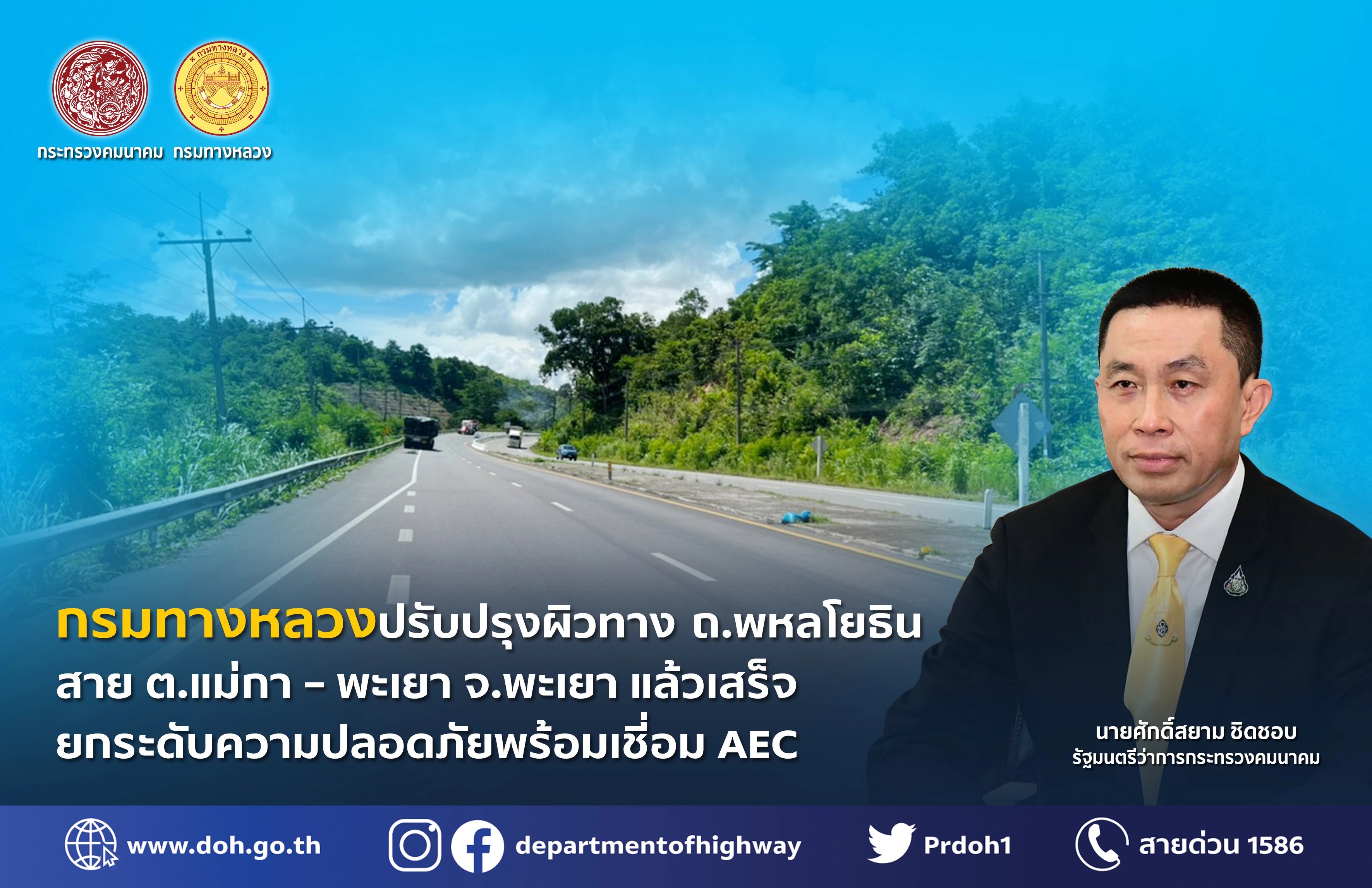 กรมทางหลวง โดยสำนักก่อสร้างทางที่ 1 ได้ดำเนินโครงการบูรณะโครงข่ายทางหลวงเชื่อมโยงระหว่างภาคบนทางหลวงหมายเลข 1 (ถนนพหลโยธิน) สาย ต.แม่กา - พะเยา จ.พะเยา (เป็นตอนๆ) แล้วเสร็จ ตามนโยบายของ นายศักดิ์สยาม ชิดชอบ รัฐมนตรีว่าการกระทรวงคมนาคม ที่ต้องการบูรณาการพัฒนาด้านคมนาคมและระบบโลจิสติกส์ และการเพิ่มประสิทธิภาพการให้บริการของทางหลวงสายหลัก ซึ่งมีเป้าหมายสอดคล้องกับแผนพัฒนาเศรษฐกิจและสังคมแห่งชาติ ฉบับที่ 12 (พ.ศ.2560 - 2564) ด้านการพัฒนาโครงสร้างพื้นฐานและระบบโลจิสติกส์, แผนยุทธศาสตร์การพัฒนาโครงสร้างพื้นฐานด้านการคมนาคมขนส่งของไทย (พ.ศ.2558 - 2565) และแผนยุทธศาสตร์กระทรวงคมนาคม ในการเพิ่มขีดความสามารถการเชื่อมโยงโครงข่ายทางหลวงกับประเทศเพื่อนบ้าน ซึ่งเป็นเป้าหมายการบริหารงานโดยมุ่งสัมฤทธิ์ผลและประโยชน์สุขของประชาชนเป็นหลัก