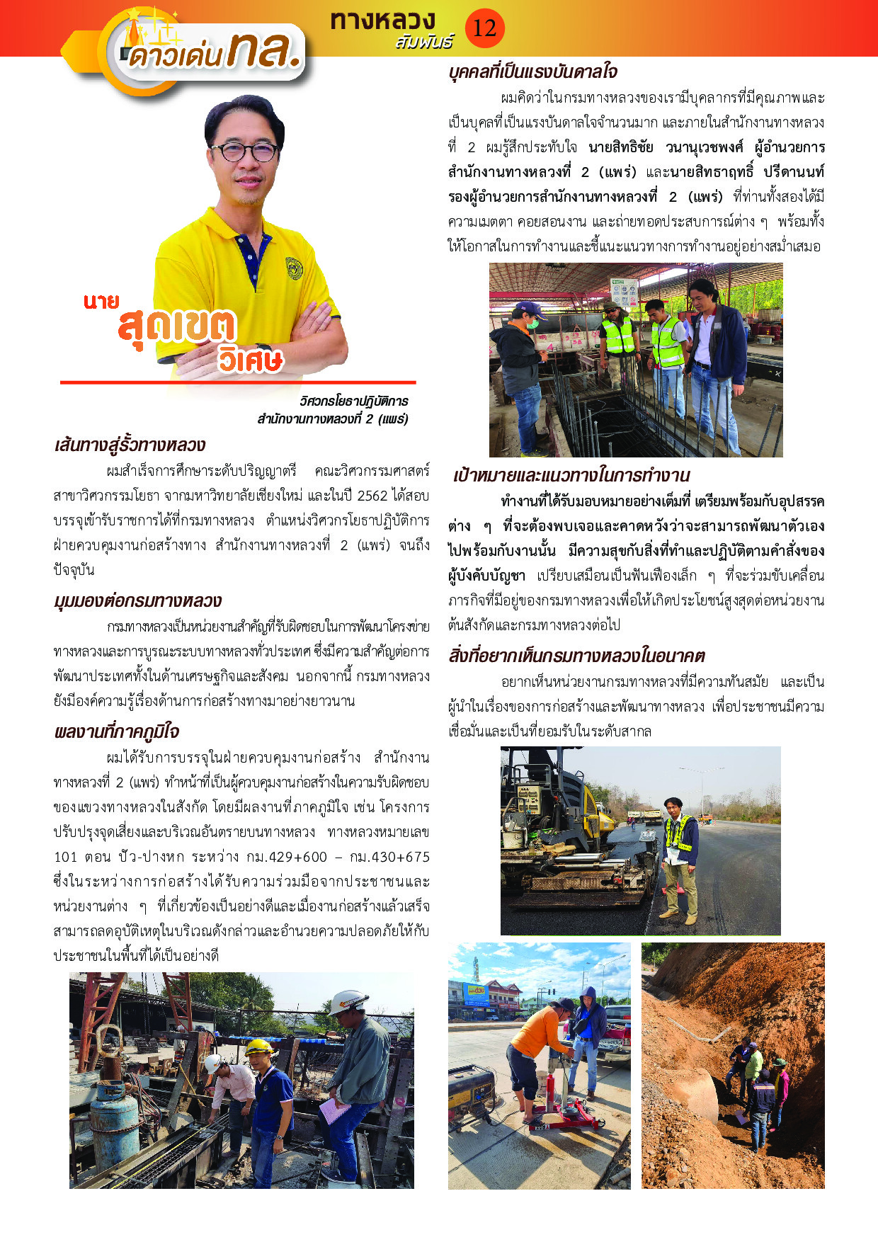 ยินดีด้วยกับ นายสุดเขต วิเศษ วิศวกรโยธาปฏิบัติการ ส่วนควบคุมงานก่อสร้าง สำนักงานทางหลวงที่ 2 (แพร่) ได้ลงวารสาร ทางหลวงสัมพันธ์ คอลัมภ์ดาวเด่น ทล. ฉบับ3/2567