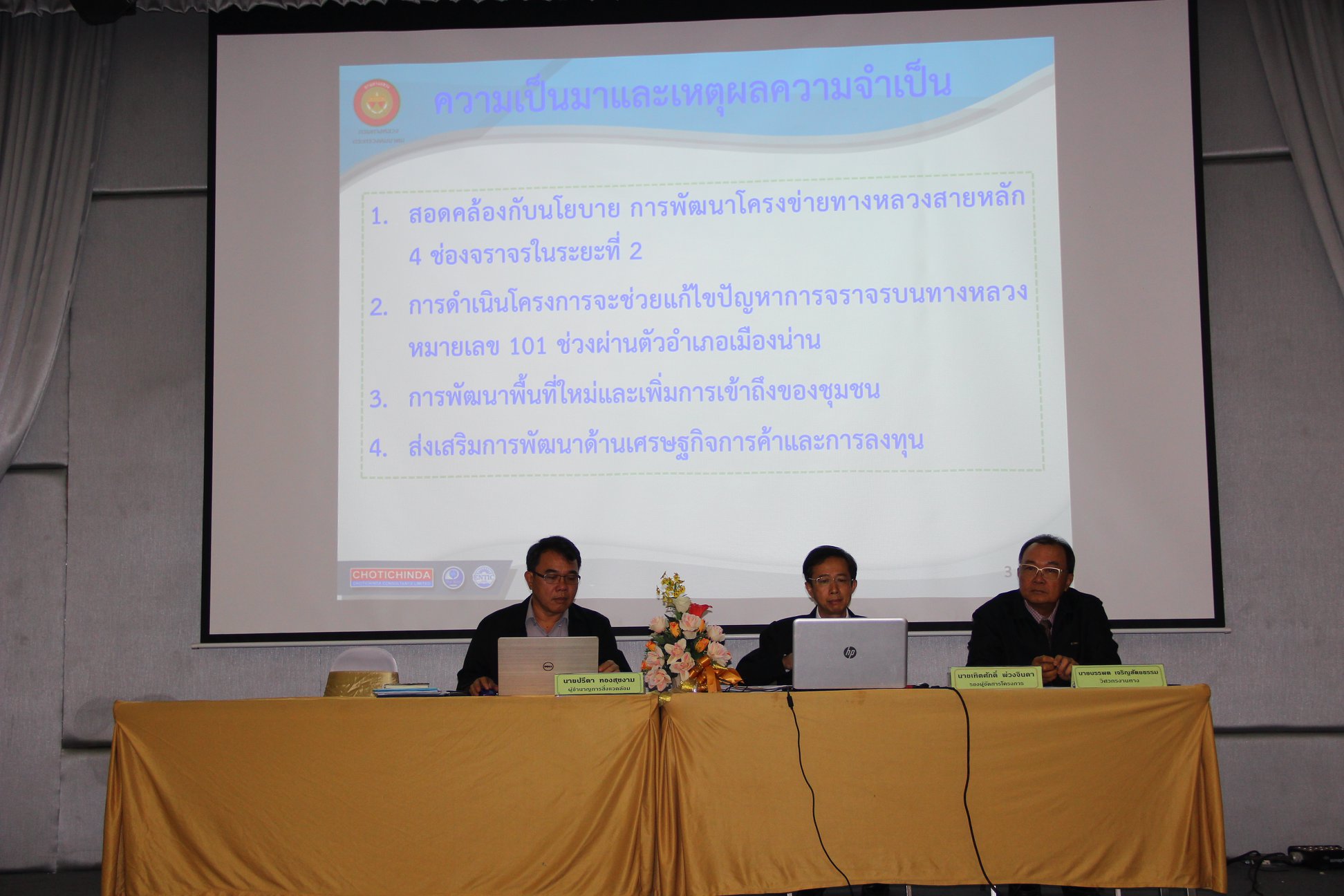 เมื่อวันที่ 25 กุมภาพันธ์ 2562 สำนักงานทางหลวงที่ 2 (แพร่) โดยนายอภิชาต อุปสิทธิ์ ผส.ทล. 2 นายภูริฑัติ เรืองพิริยะ รส.ทล.2.1 นายสิทธิโชค ลี้มิ่งสวัสดิ์ รส.ทล. 2.2 นายสกล กาญจนากร ผอ.ขท.น่านที่ 1 พร้อมข้าราชการในสังกัด ร่วมประชุมสรุปผลการศึกษาความเหมาะสมทางด้านเศรษฐกิจ วิศวกรรม และผลกระทบด้านสิ่งแวดล้อม โครงการก่อสร้างทางเลี่ยงเมืองน่าน ณ ห้องน้ำทองแกรนด์ โรงแรมน้ำทอง ต.บ้านดู่ใต้ อ.เมือง จ.น่าน โดยมี นายวัชรพงษ์ โพธิ์สูง รองผู้ว่าราชการจังหวัดน่าน เป็นประธานในการประชุม