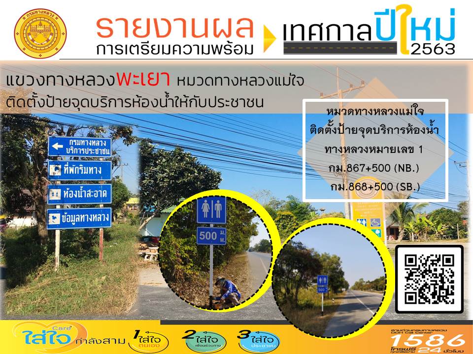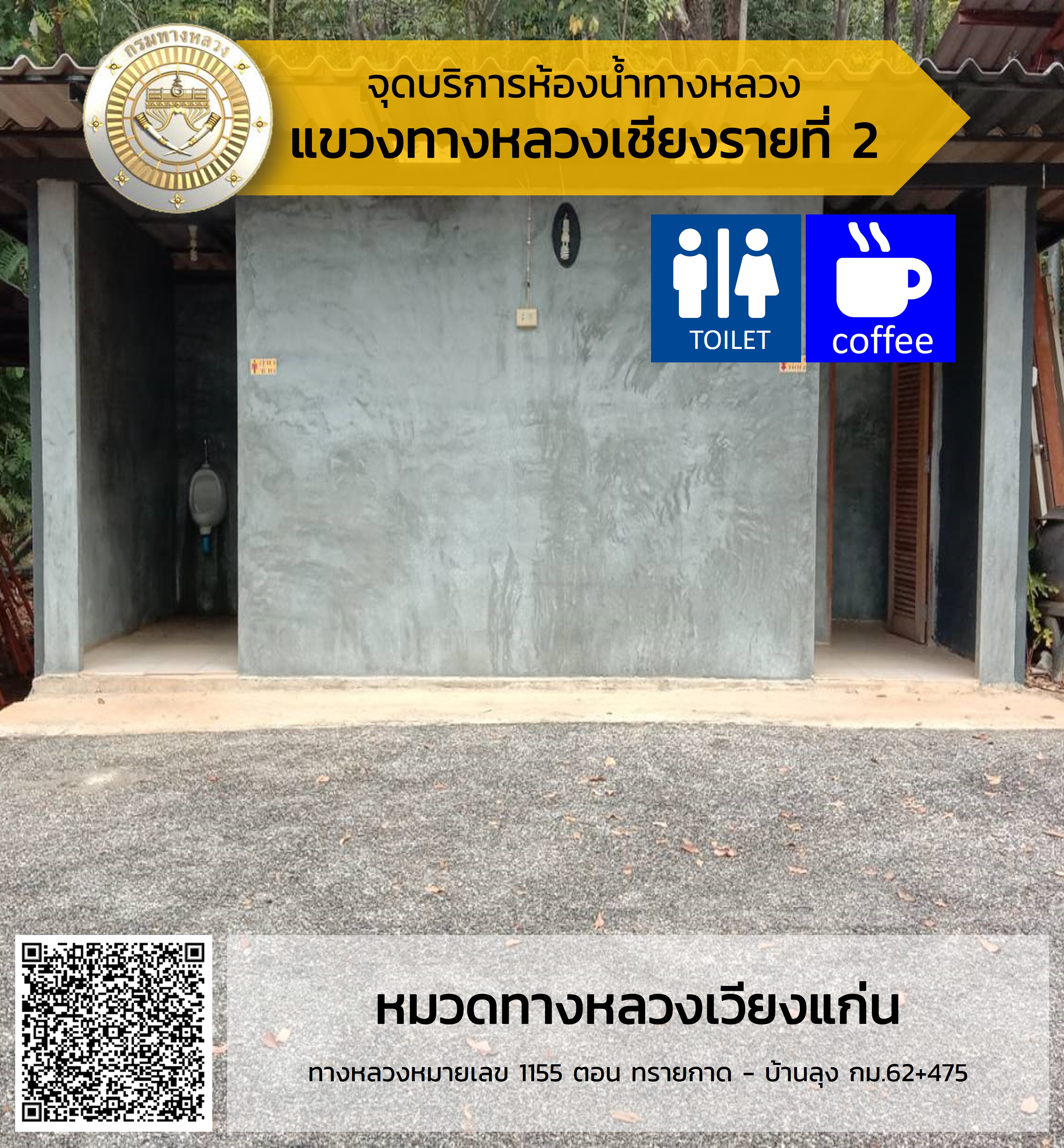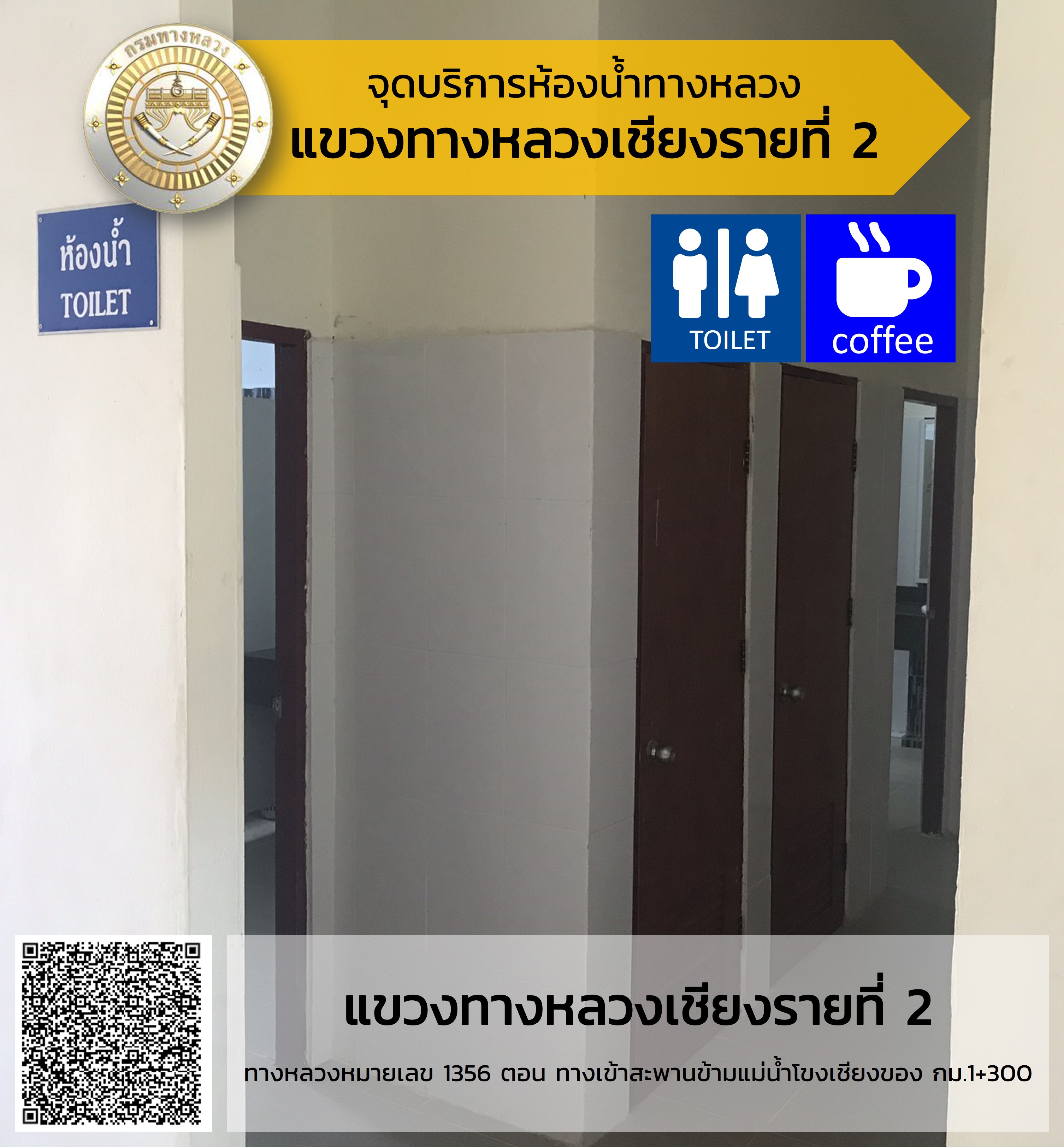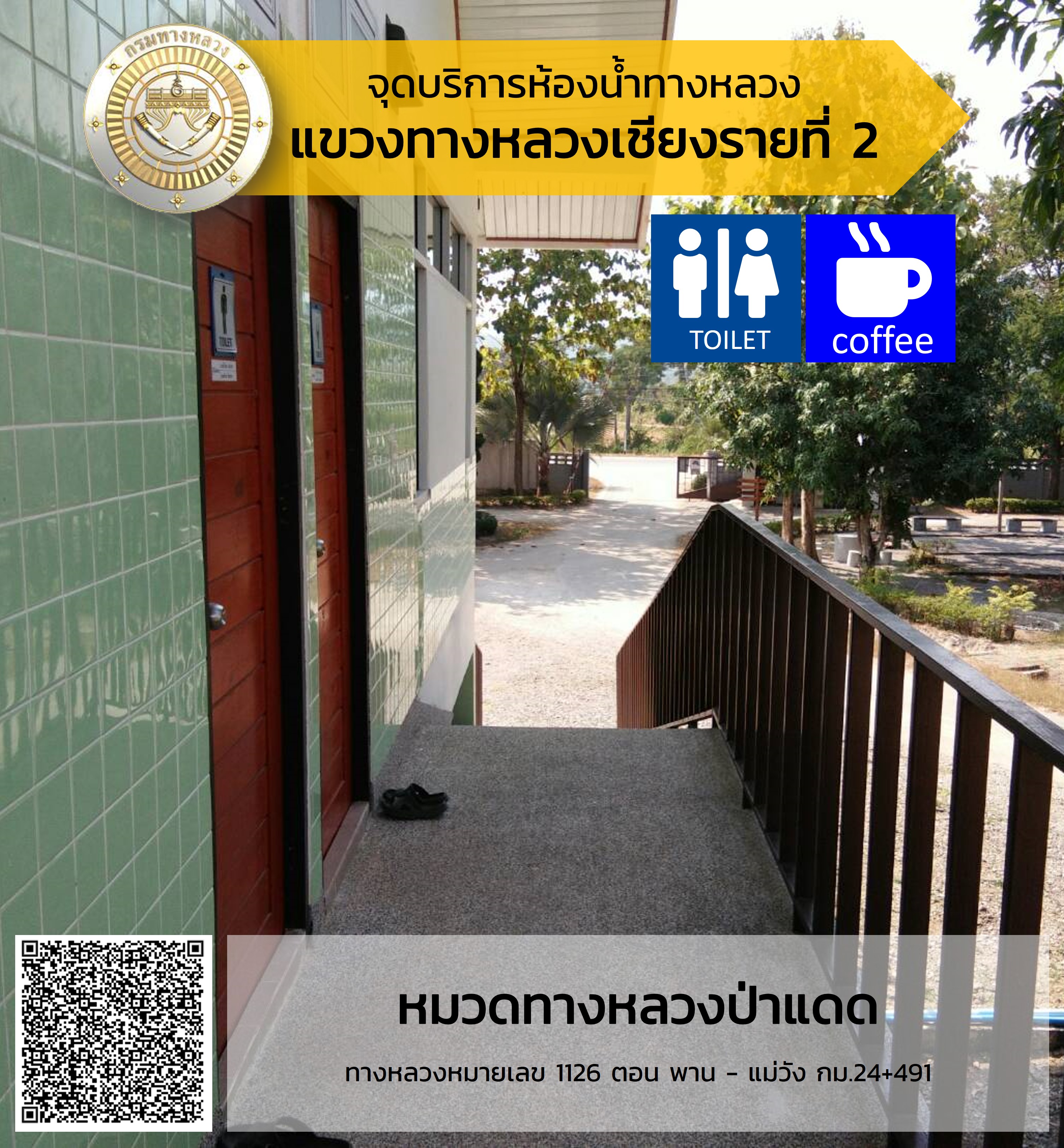 จุดบริการห้องน้ำสำหรับประชาชนและนักท่องเที่ยว ในบริเวณหมวดทางหลวงในสังกัดสำนักงานทางหลวงที่ 2 (แพร่)