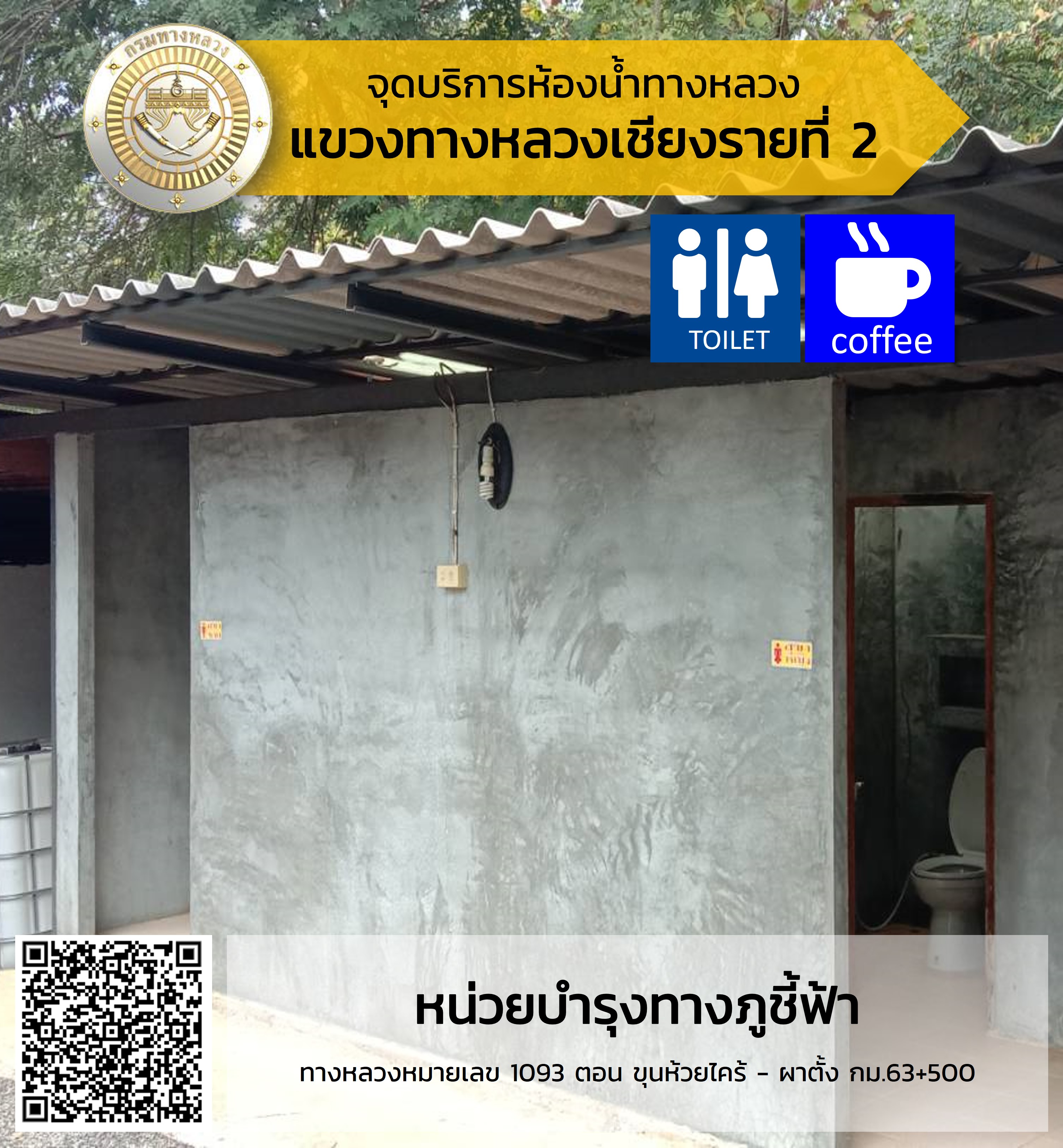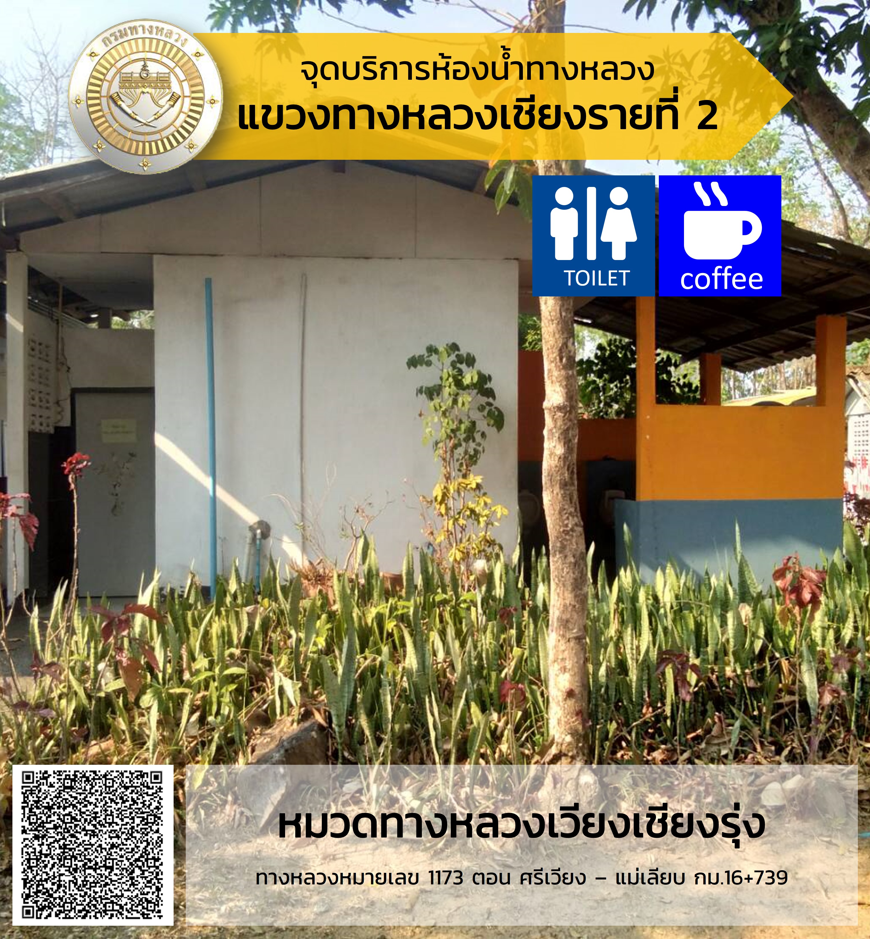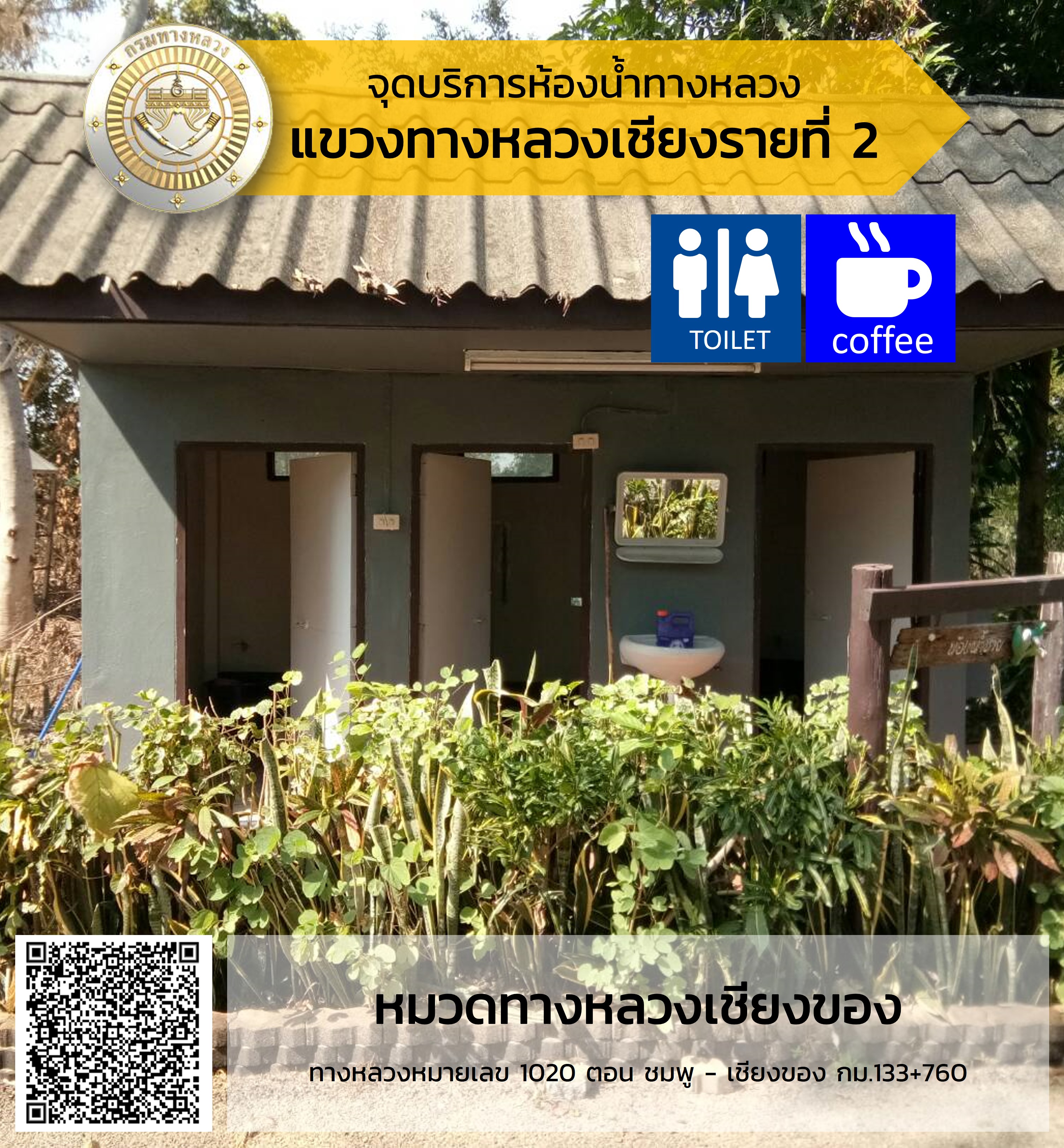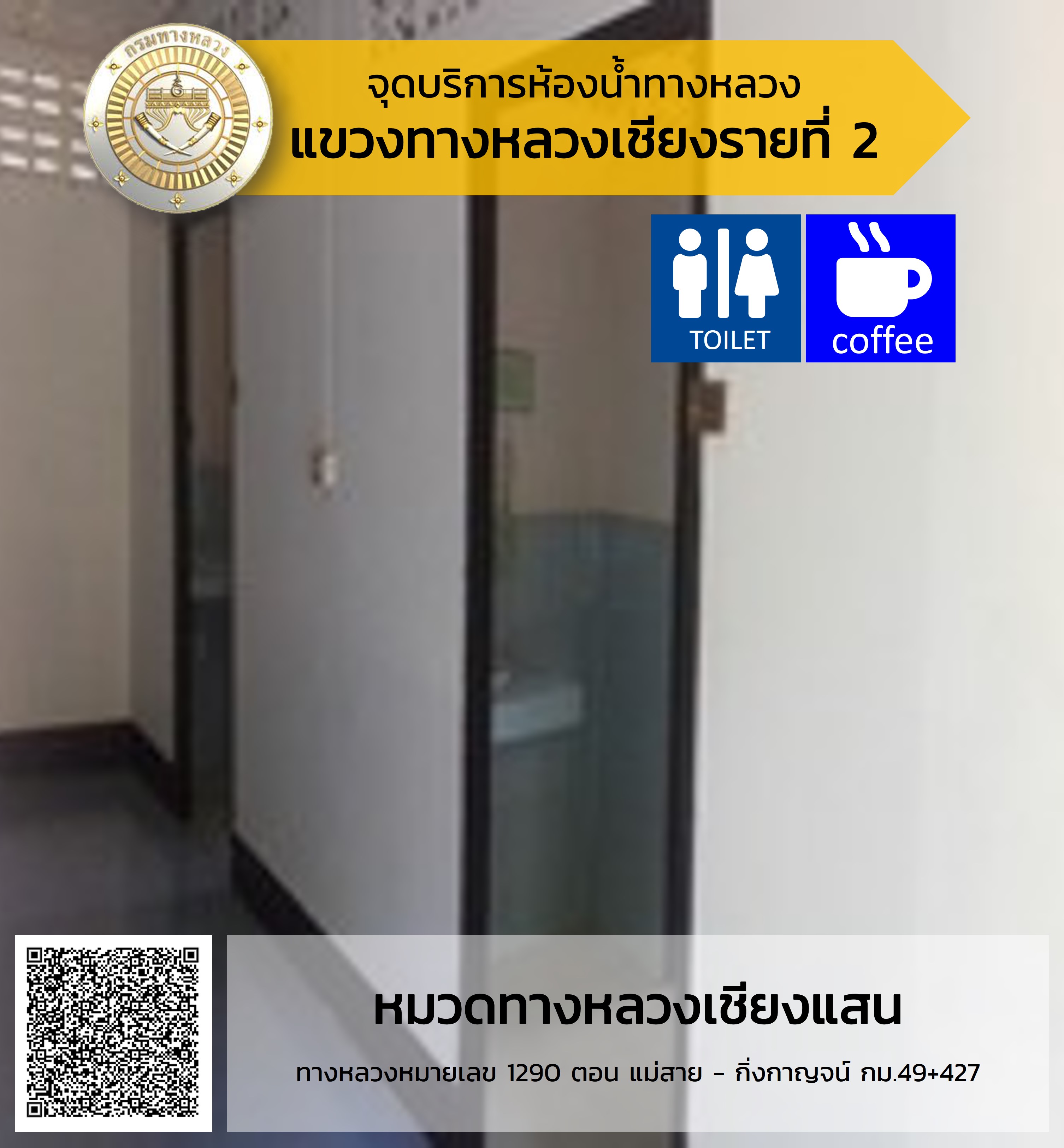 จุดบริการห้องน้ำสำหรับประชาชนและนักท่องเที่ยว ในบริเวณหมวดทางหลวงในสังกัดสำนักงานทางหลวงที่ 2 (แพร่)