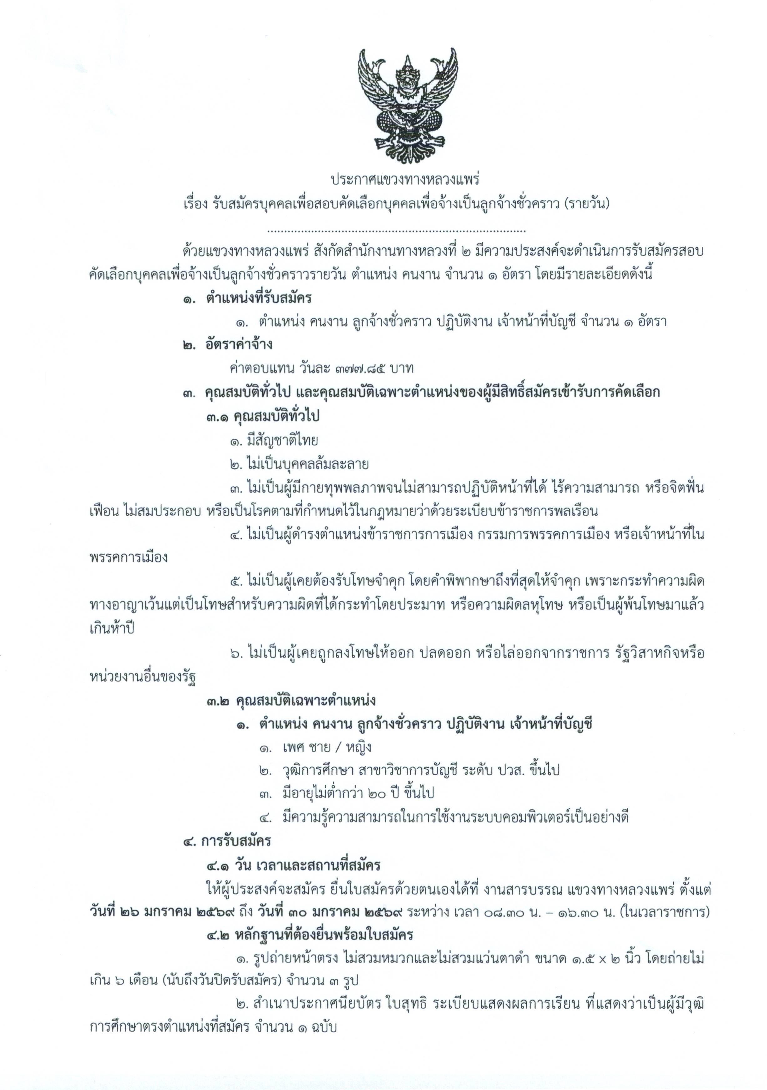 สามารถยืนเอกสารสมัครด้วยตนเองที่ งานสารบรรณ แขวงทางหลวงแพร่